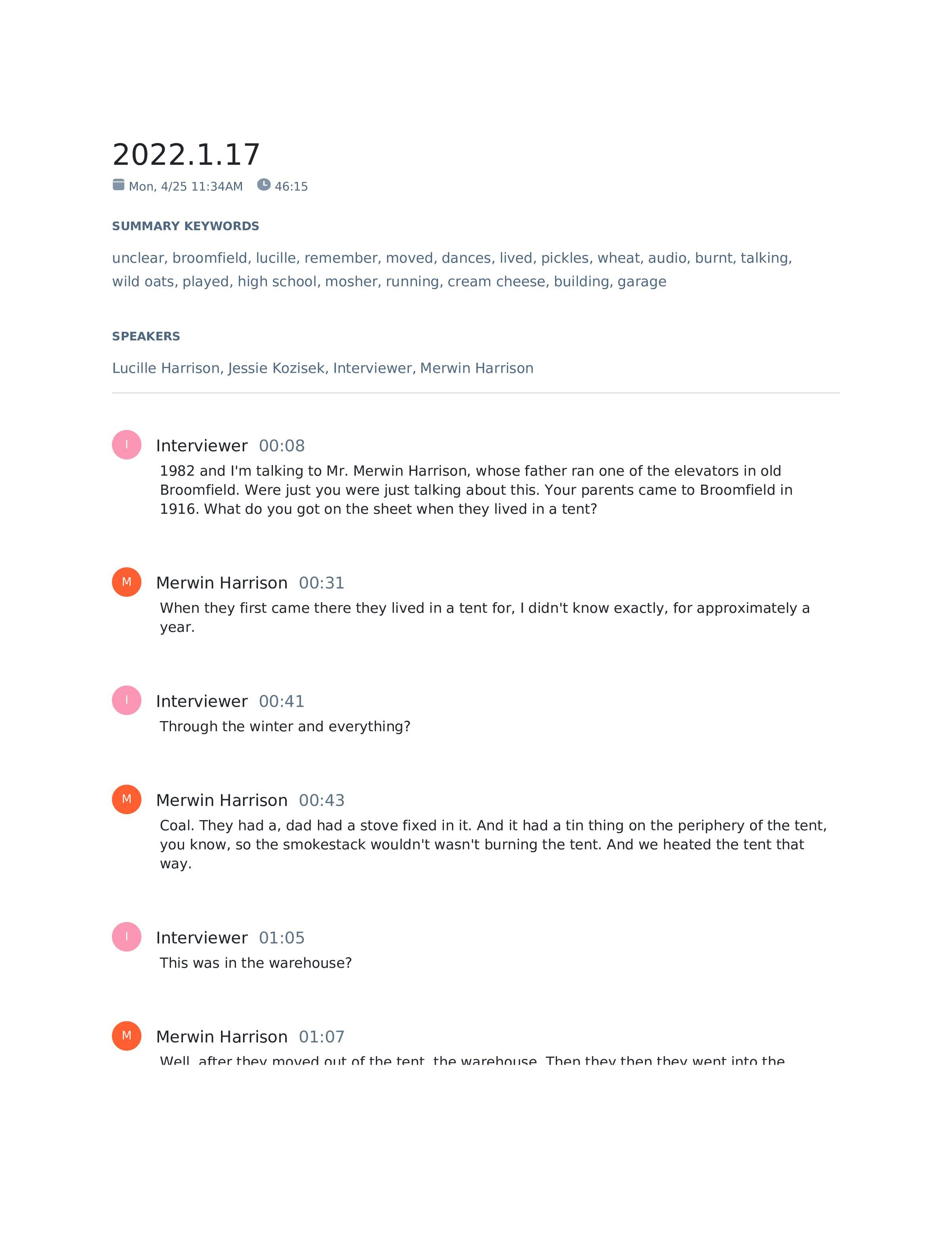 Oral history interview with Merwin Harrison on February 18th, 1982. Jessie Kozisek and Lucille Harrison are also in the interview.