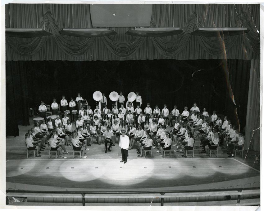 Photograph was donated to the Broomfield Depot Museum by Sharon Campbell in 2017, along with other photographs and papers. Campbell was part of the Broomfield Junior High concert band while in school in the 1960s.