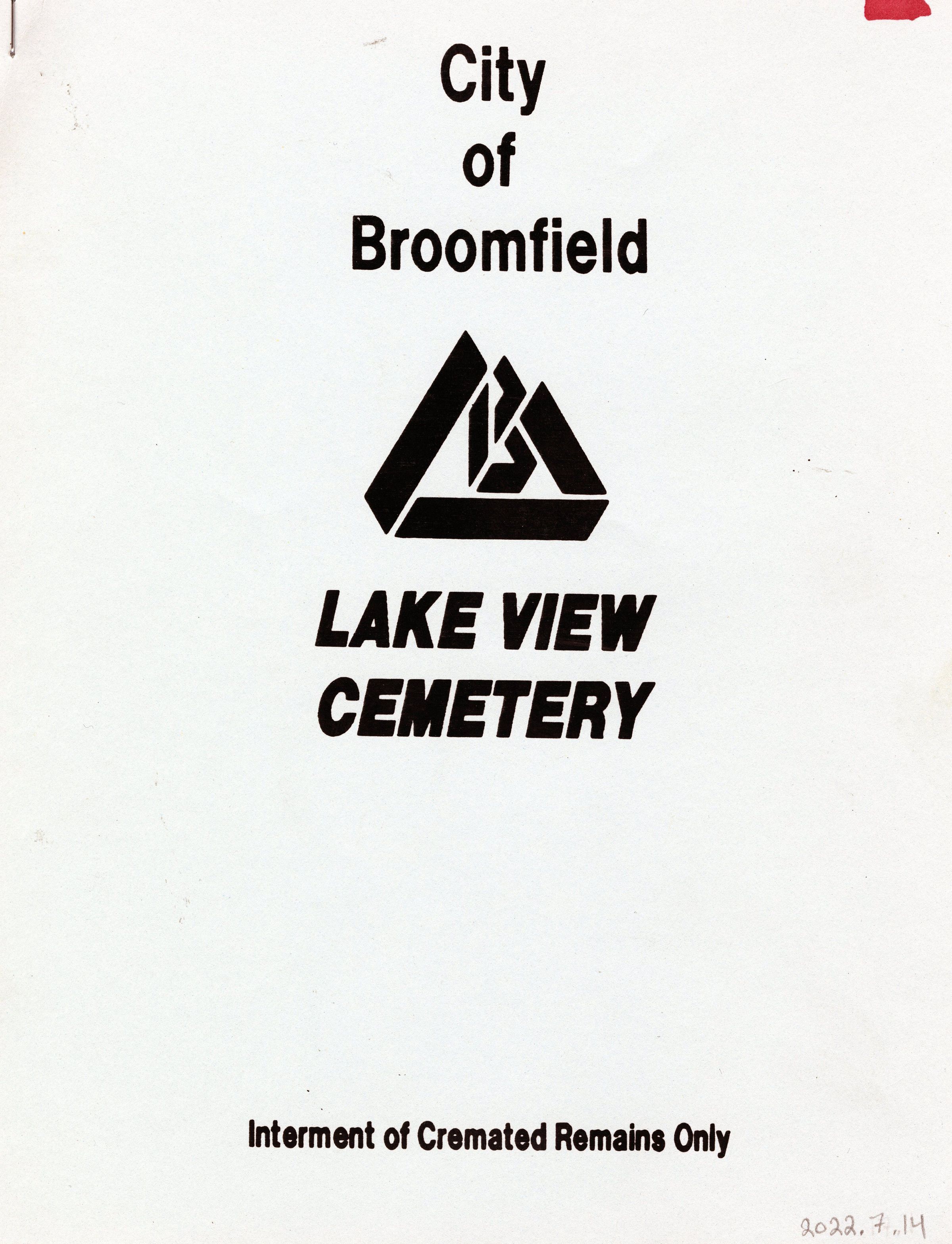 Pamphlet titled "City of Broomfield, Lake View Cemetery, Interment of Cremated Remains Only".