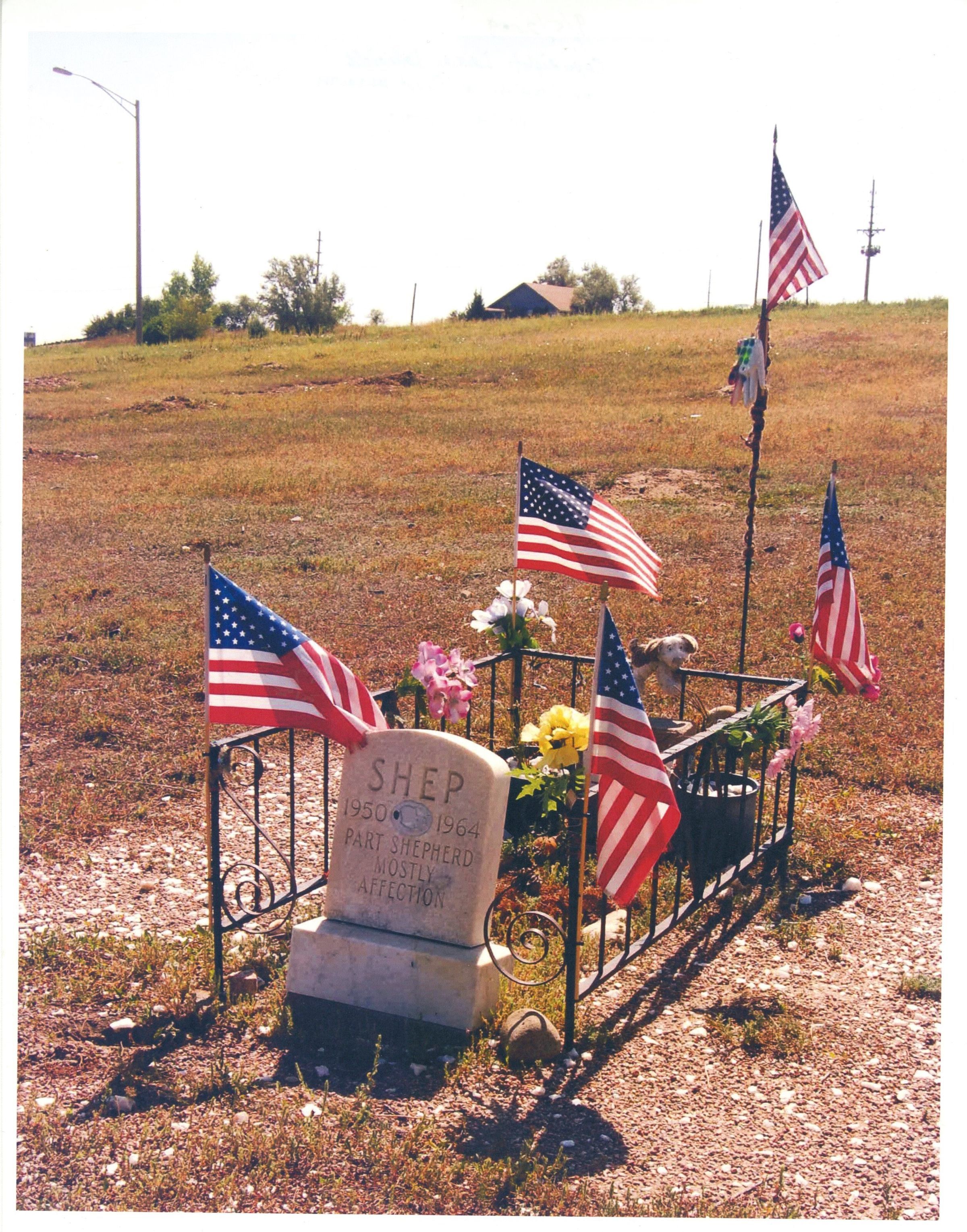 Photograph of Shep's grave. On back of photo is written: "9/5/2009 Copyright Larry Ledwick For display @ Depot Museum Blackhorse photo"