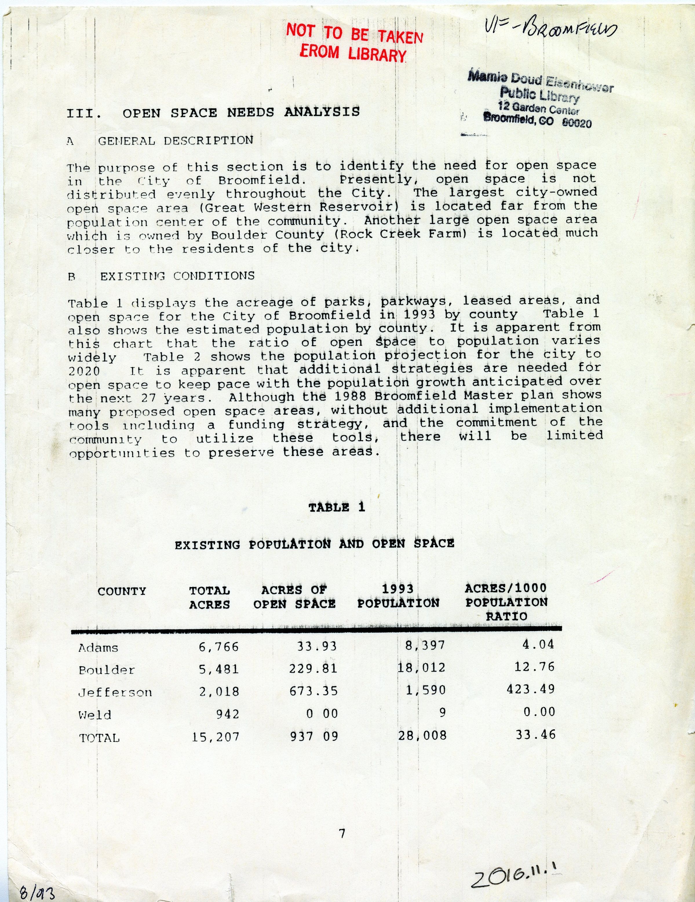 Document explains. Explain where open space already exists in the broomfield area, and where open space is necessary. It is in the context of creating new open spaces closer to the city center.