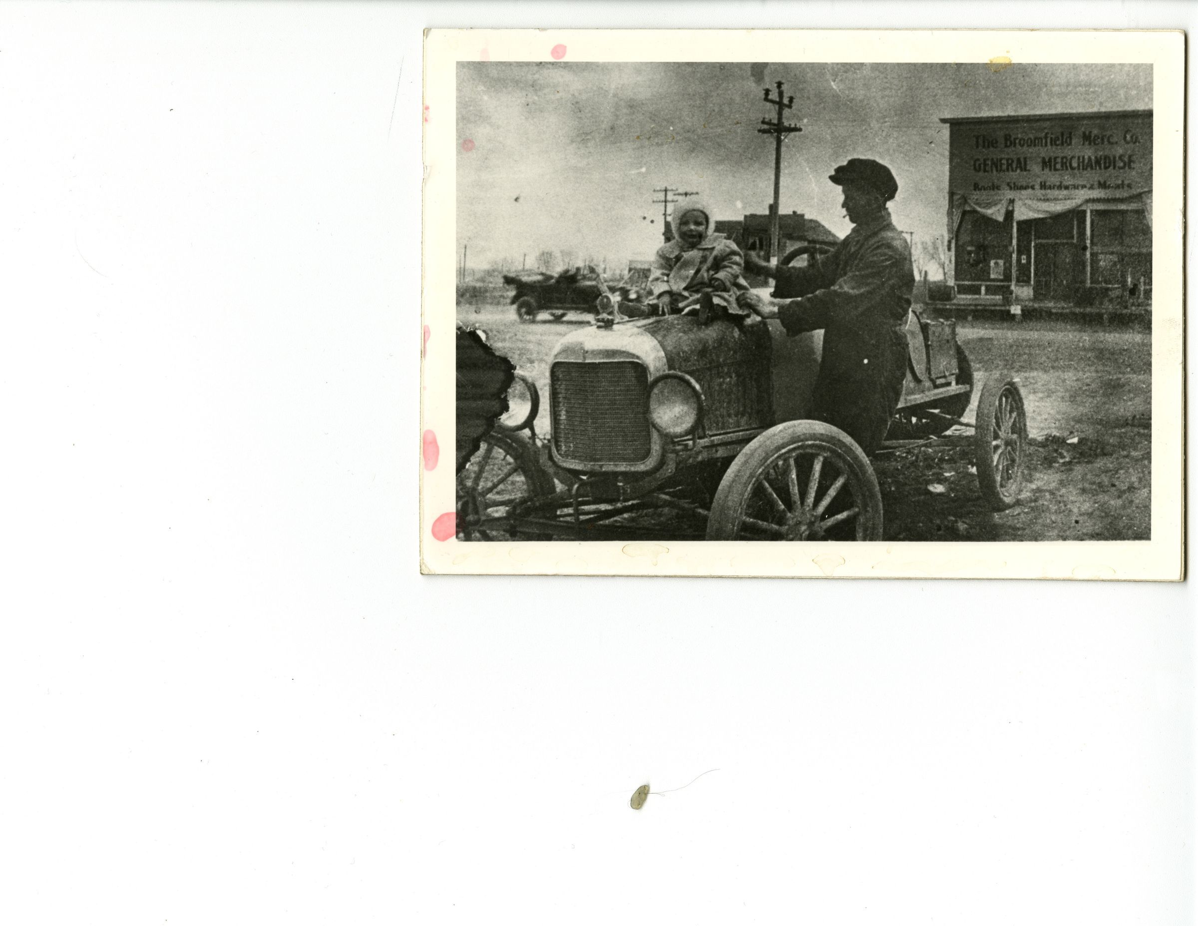 Photo shows Broomfield Merc. Co. General Merchandise, Books, Shoes, Hardware & Meats.