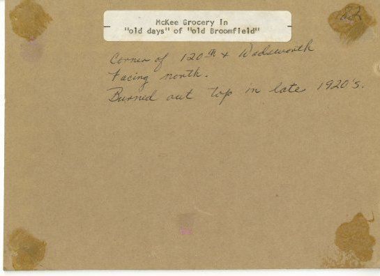 McKee Grocery. Corner of 120th and Wadsworth facing north. Burned out top in late 1920s.