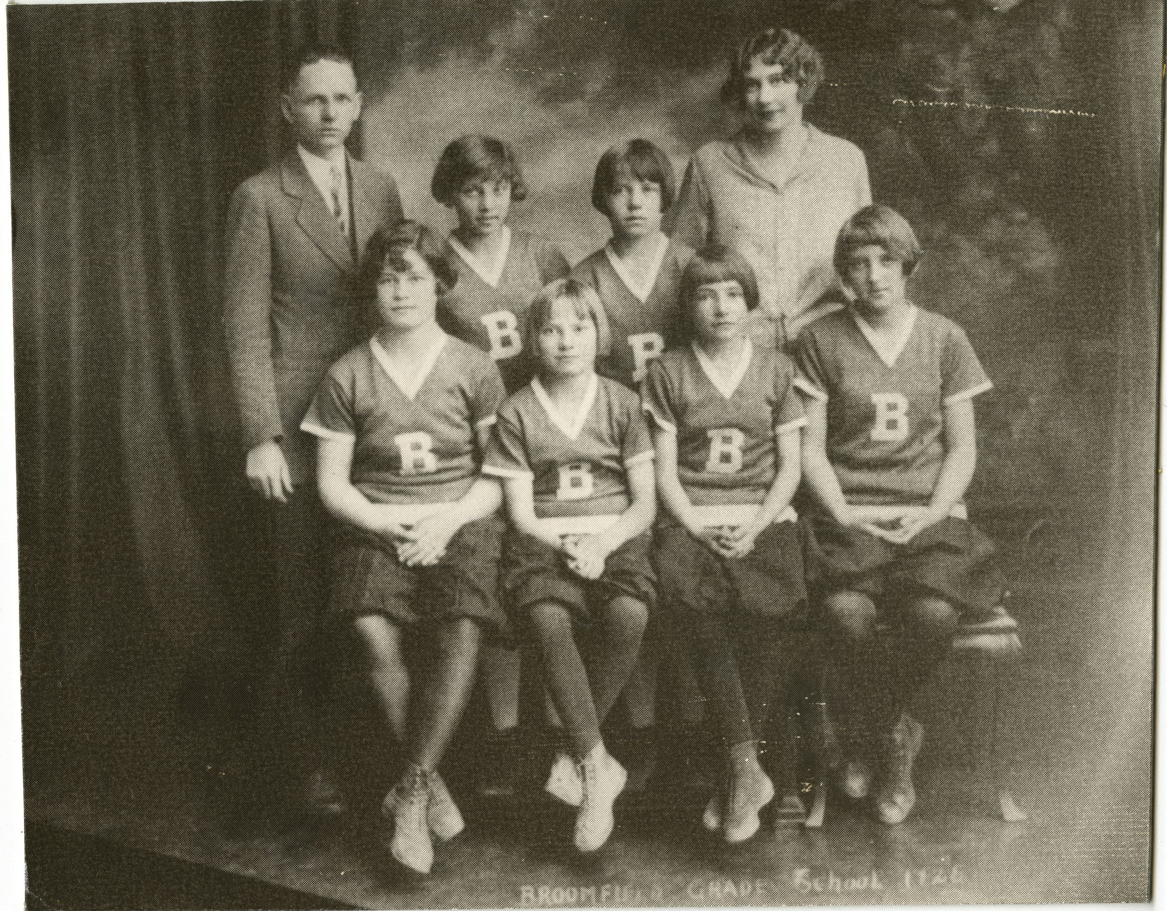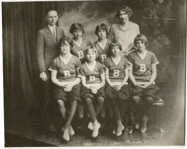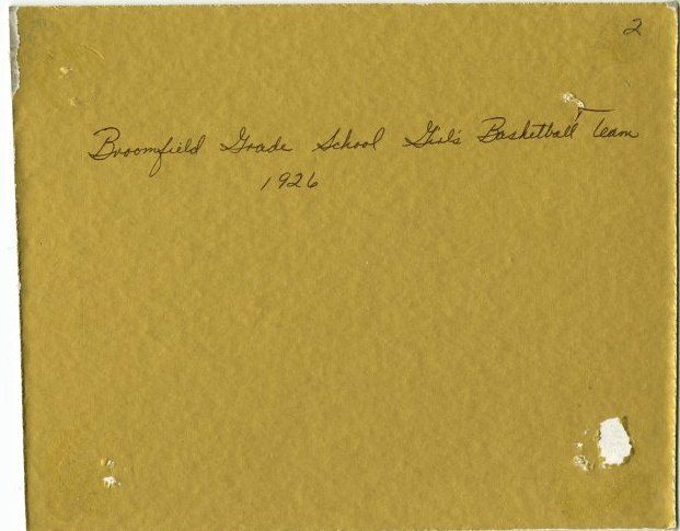 Broomfield Grade School Girls basketball team 1926 - Mrs. Katherine Mosher appears front left. Duplicate of ph.2 Negative on file.