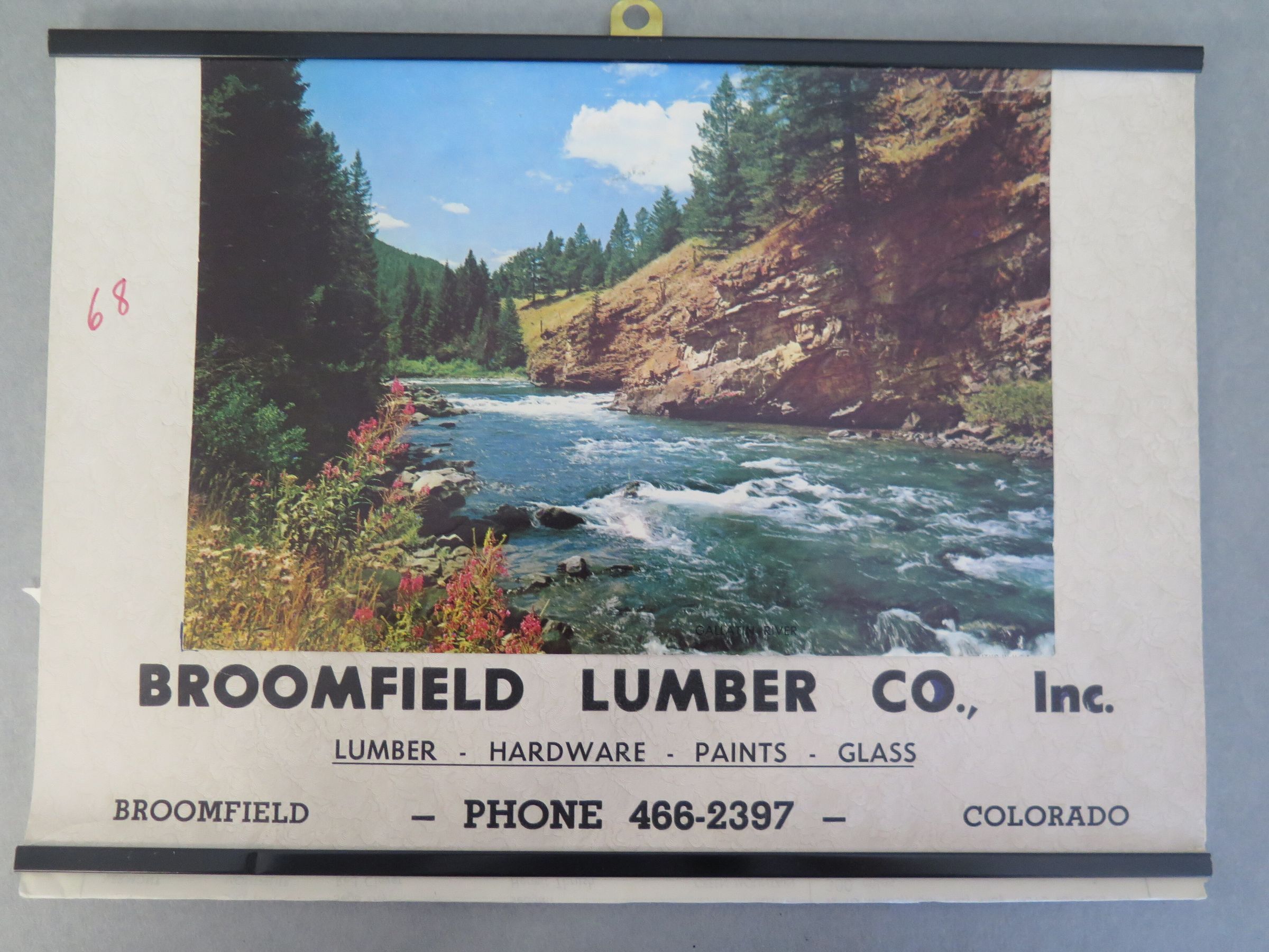 Broomfield Lumber Co. Calendar from 1968 with a photo on the front, this photo does not have a caption.