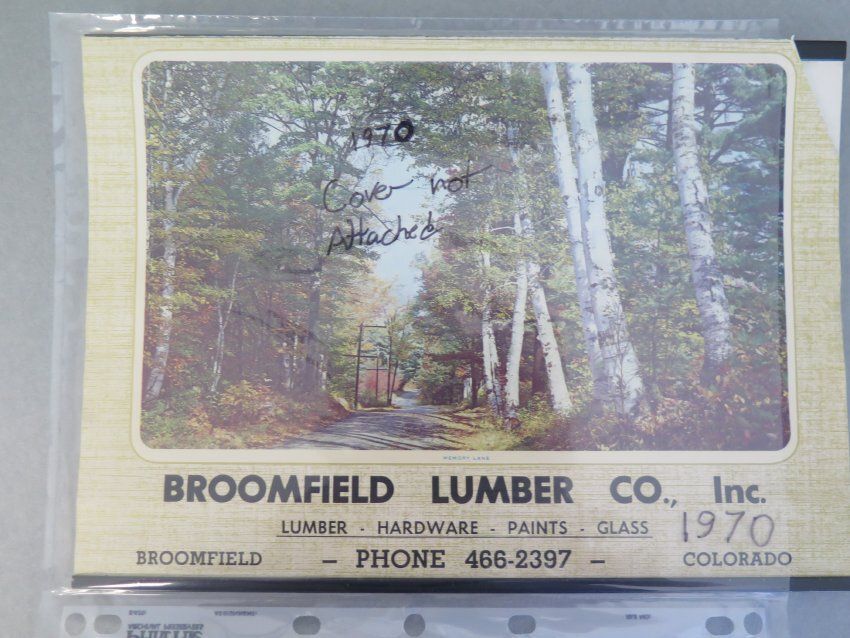 Broomfield Lumber Co. Calendar from 1970 with a photo captioned "Memory Lane" on the front