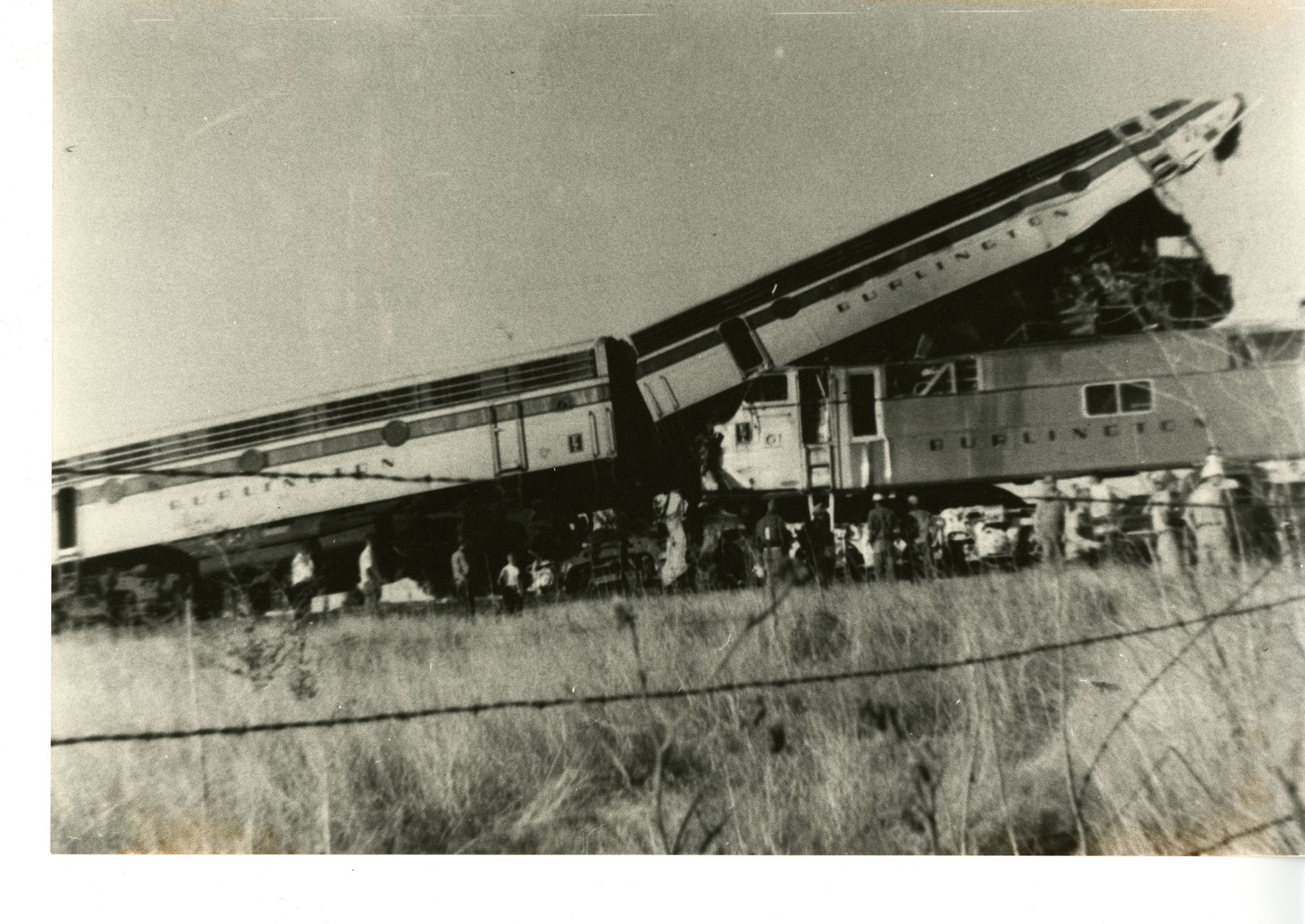 Black and White photo of a Burlington train crash.