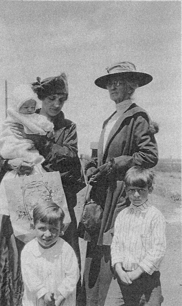 Burns Junction Station Agent's Family taken near Depot. Left to right: Wife, Hazel M. Shunk (Franks), daughter, Mildred J., mother, Alice Shunk (Kingston), and sons, Harry M. and Charles F. Shunk Jr.Collection