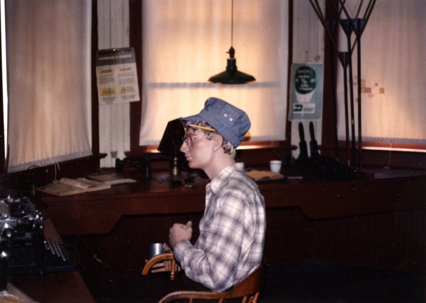 Photo of interior of the Depot Museum, c. early 1990s. Control room with mannequin of station agent working.