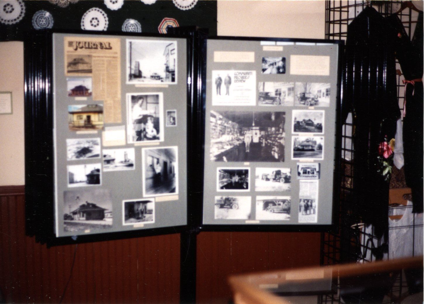 Photo of interior of the Depot Museum, c. early 1990s. Posters of photos of Broomfield