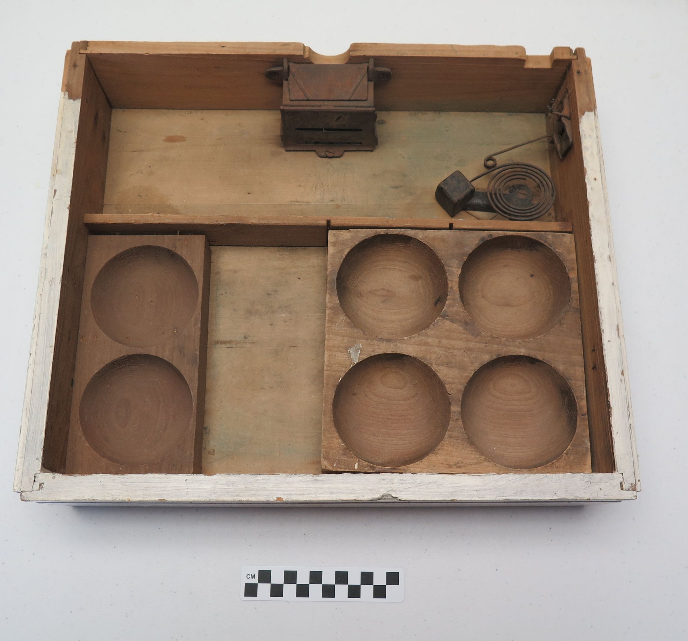 The third item is a removable coin tray with four round compartments (numbered as 1987.15.40a).Collection