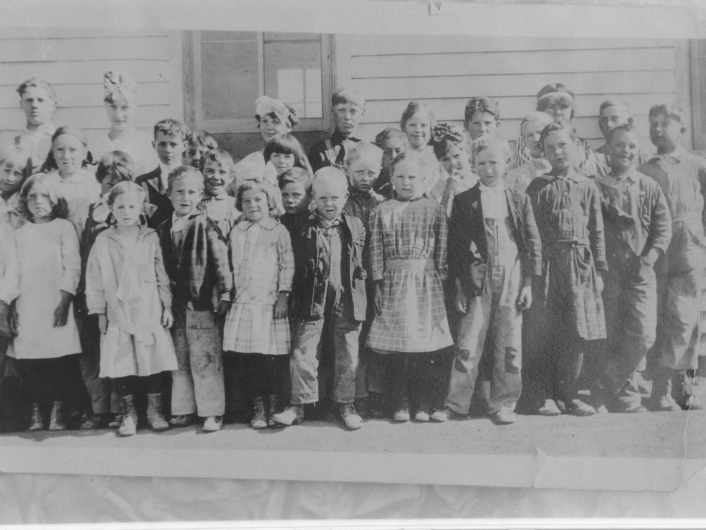 Broomfield School in District #43 of Boulder County in 1912. It is a photo of the children and the paper that came with the donations said that photo has Adeline Kozicek in it.