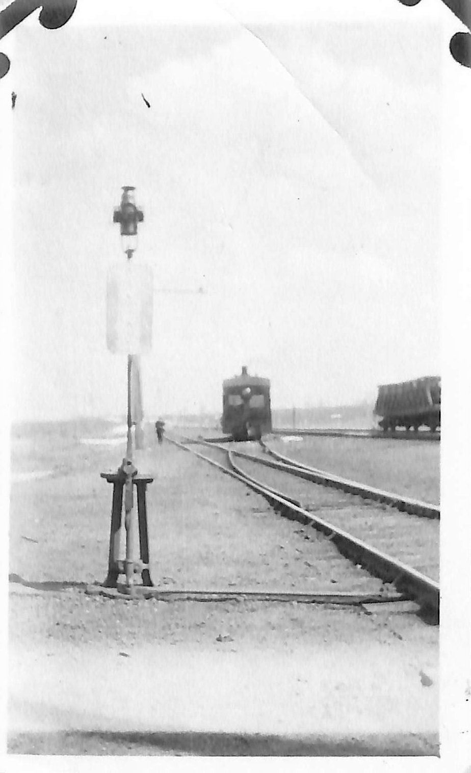 Photograph of the Kite Route Trolly derailed in 1920, taken by Charles Shunk Sr., station agent. Burns Junction.