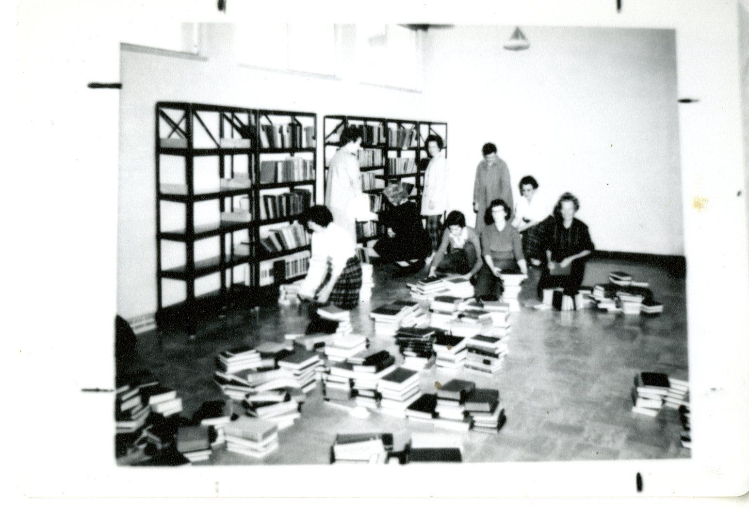 Putting the books on the shelves of the new library - 1963