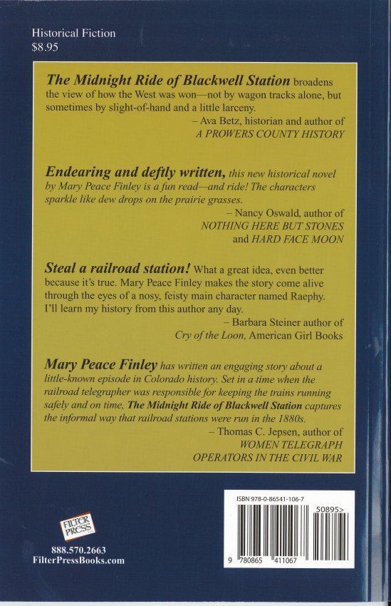 Nine-year-old Raephy McDowell and her family live in the Blackwell Railroad Station where her mother works. The station in southeast Colorado is moved in the dead of night to brand new town named Lamar. This is a fictional account of the founding of Lamar, Colorado, in May of 1886. The main characters in the story are based on participants of the historical event.