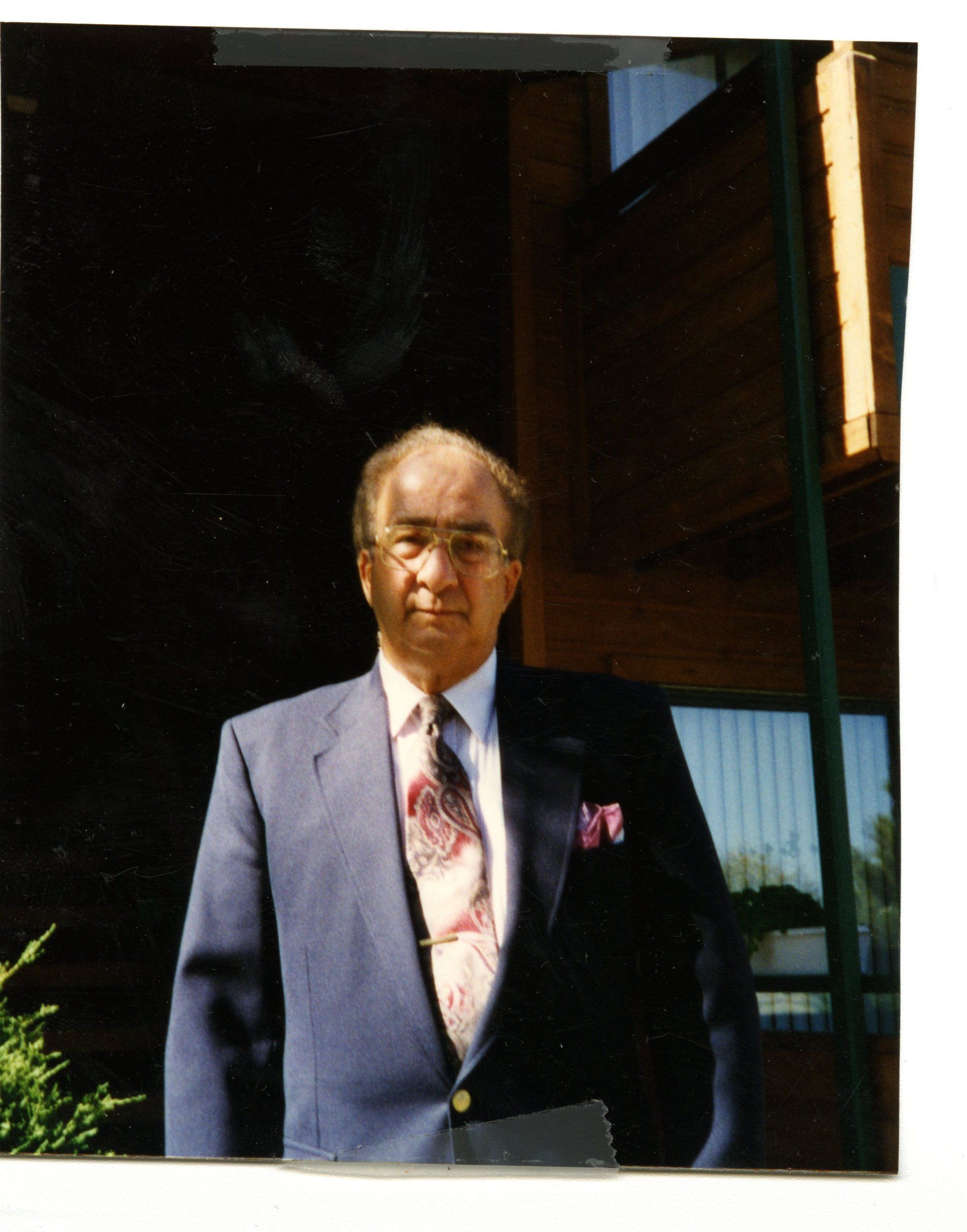 color photo of a man with a dark gray suit coat and a white tie and a white shirt, with brown hair Joe Lemno AARP president 1995-96