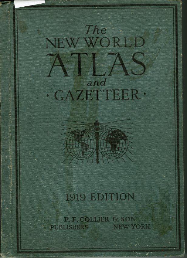 "The New World Atlas and Gazetteer," 1919 edition 272 pages of maps.