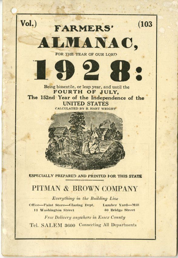 Booklet, "Farmers' Almanac, for the year of our Lord 1928". Vol. 103
