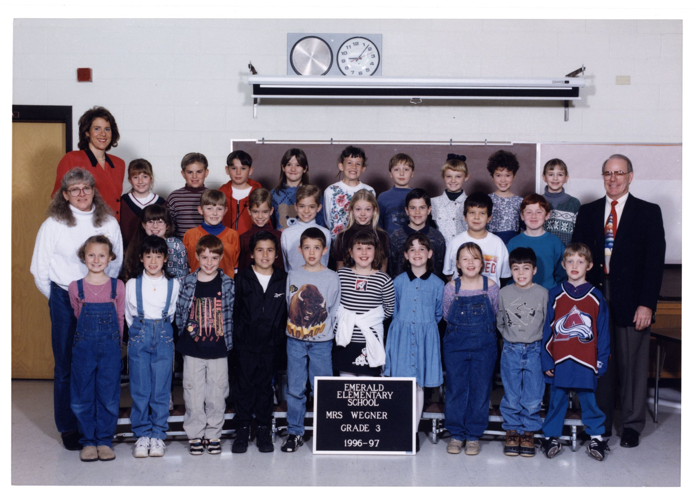 Front cover black and white photo of Emerald Elementary 1996-1997. Inside color class photo of Emerald Elementary 1996-1997, Mrs. Wegner, Grade 3, 1996-1997, three rows of students, three teachers. Back cover black and white photo of Emerald Elementary Staff 1996-1997.Lexicon