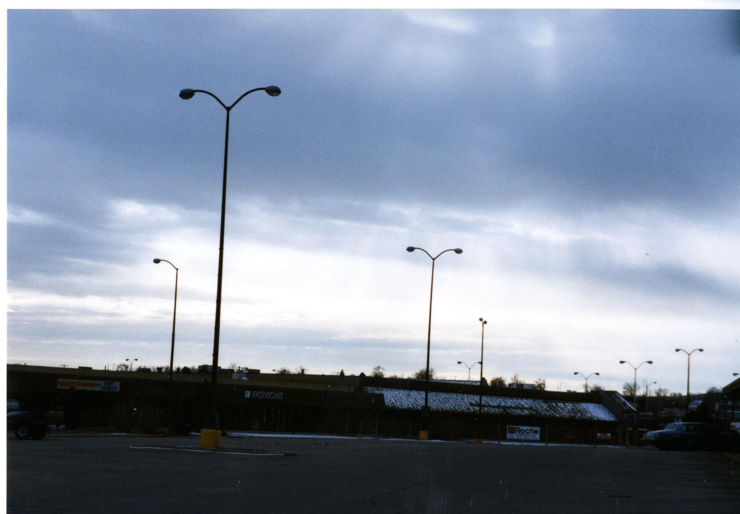 This photo is looking W.S.W across the parking lot of the Original Broomfield Retail Center. The Stores that are shown in the photo are Majestic Cleaners and Dirty Laundry, Fashions and Roche. Original shopping / strip mall built in 1957 at the intersection of Midway, 287, and 36.