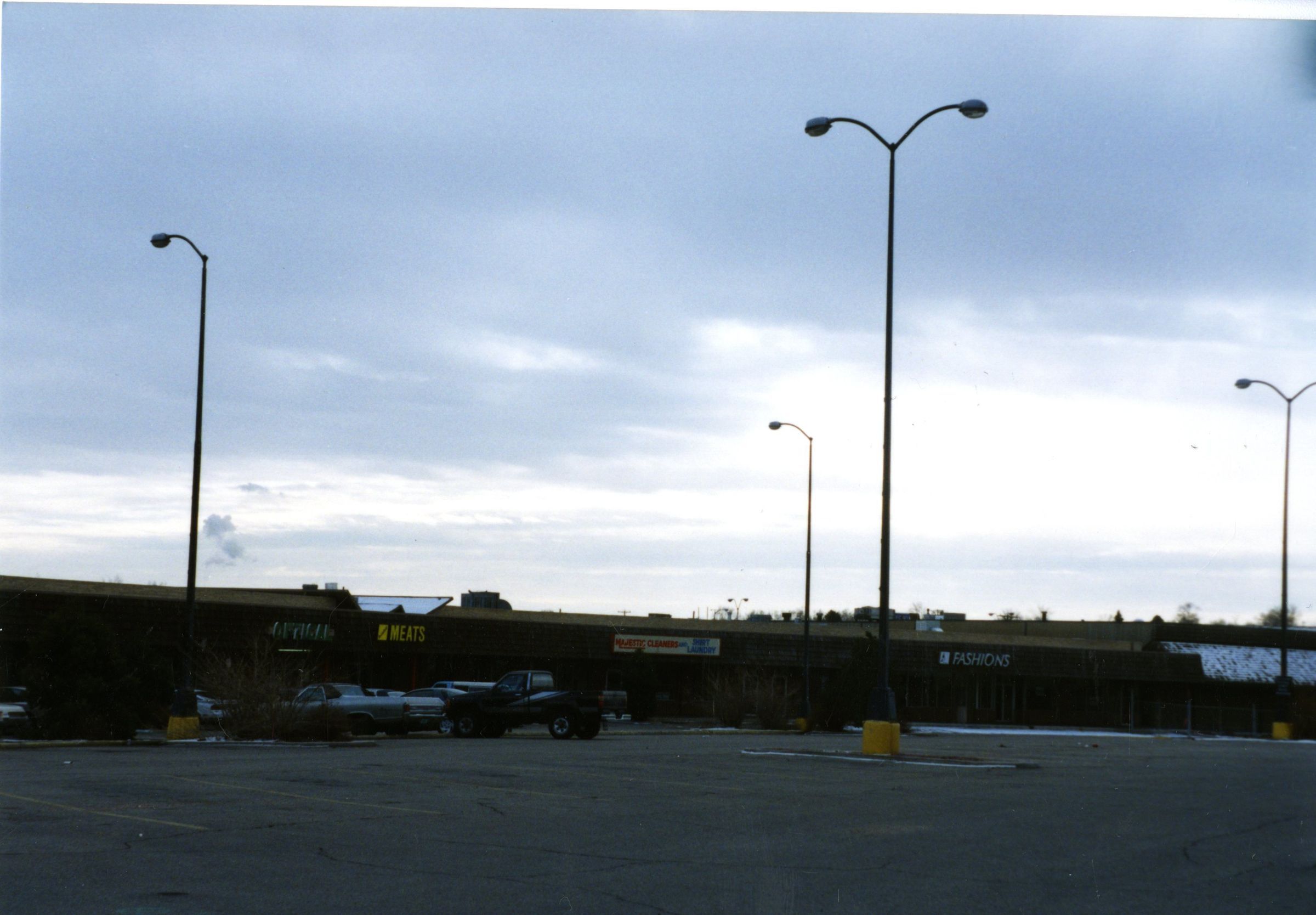 This photo is looking across the parking lot on the W.S.W side. The stores that are shown in the photo are Optical, Meats, Majestic Cleaners and Dirt Laundry, and Fashions. Original shopping / strip mall built in 1957 at the intersection of Midway, 287, and 36.Collection