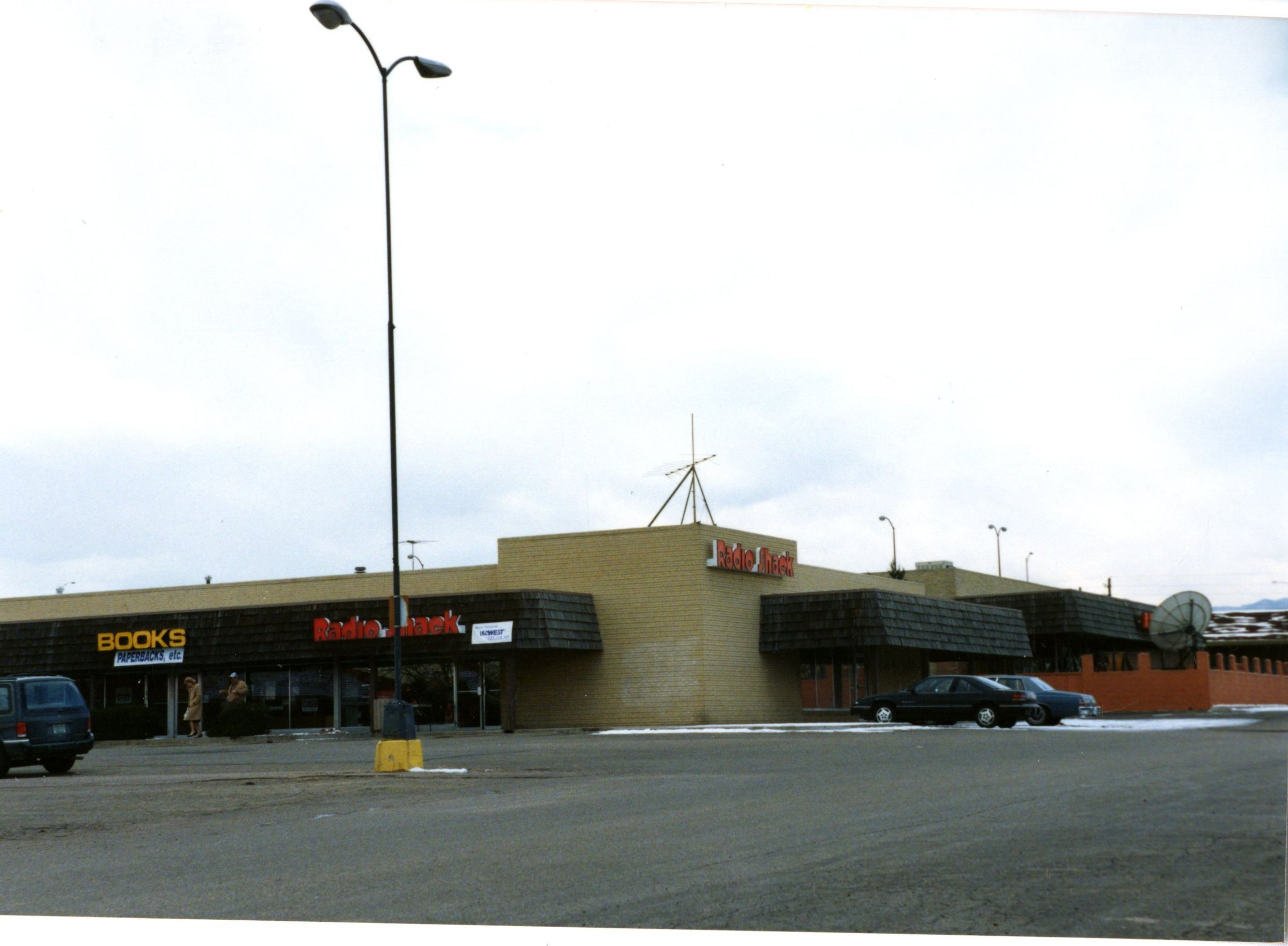 This photo is looking across a parking lot on the east side looking S.W. The businesses featured in this photo are Radio Shack and Books. Original shopping / strip mall built in 1957 at the intersection of Midway, 287, and 36.