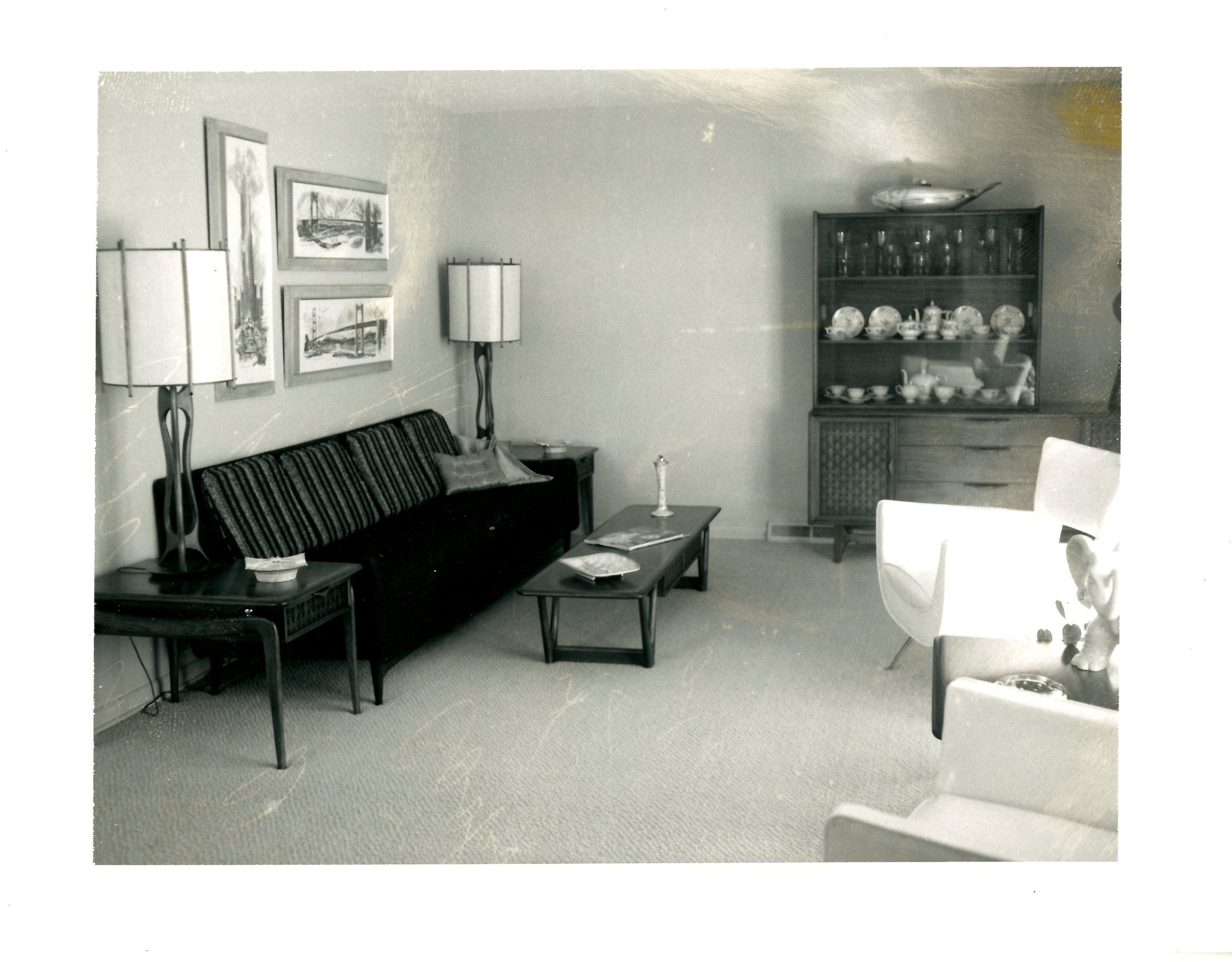 Black and White photo of living room of Mr. & Mrs. C.B. Bullock, 355 Jade, Broomfield