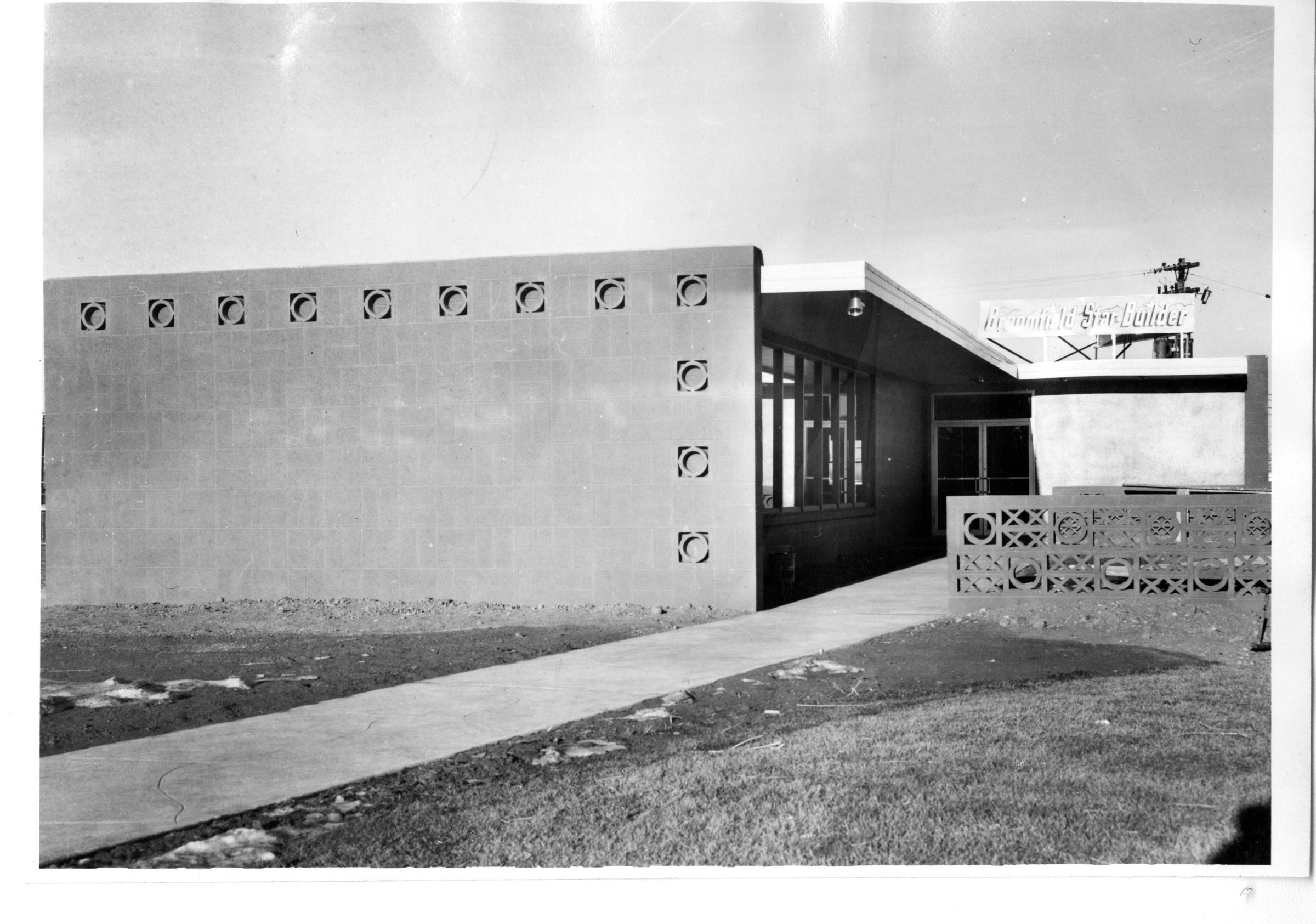 Black and white photo of Broomfield Star Builder newspaper building #10 Garden Center, now orthodontist office.
