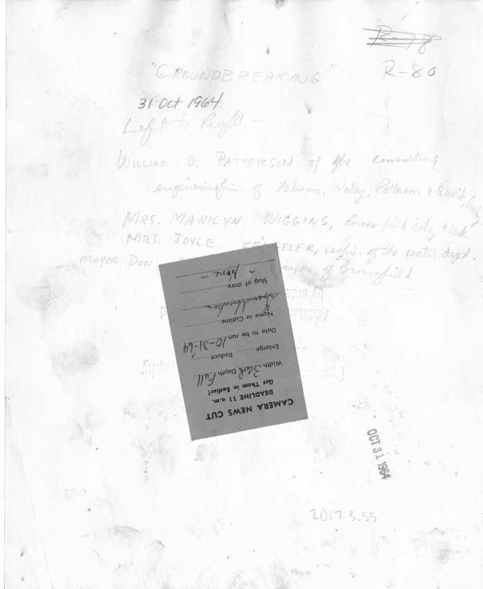 Black and White photo of groundbreaking in Broomfield, possibly water department.