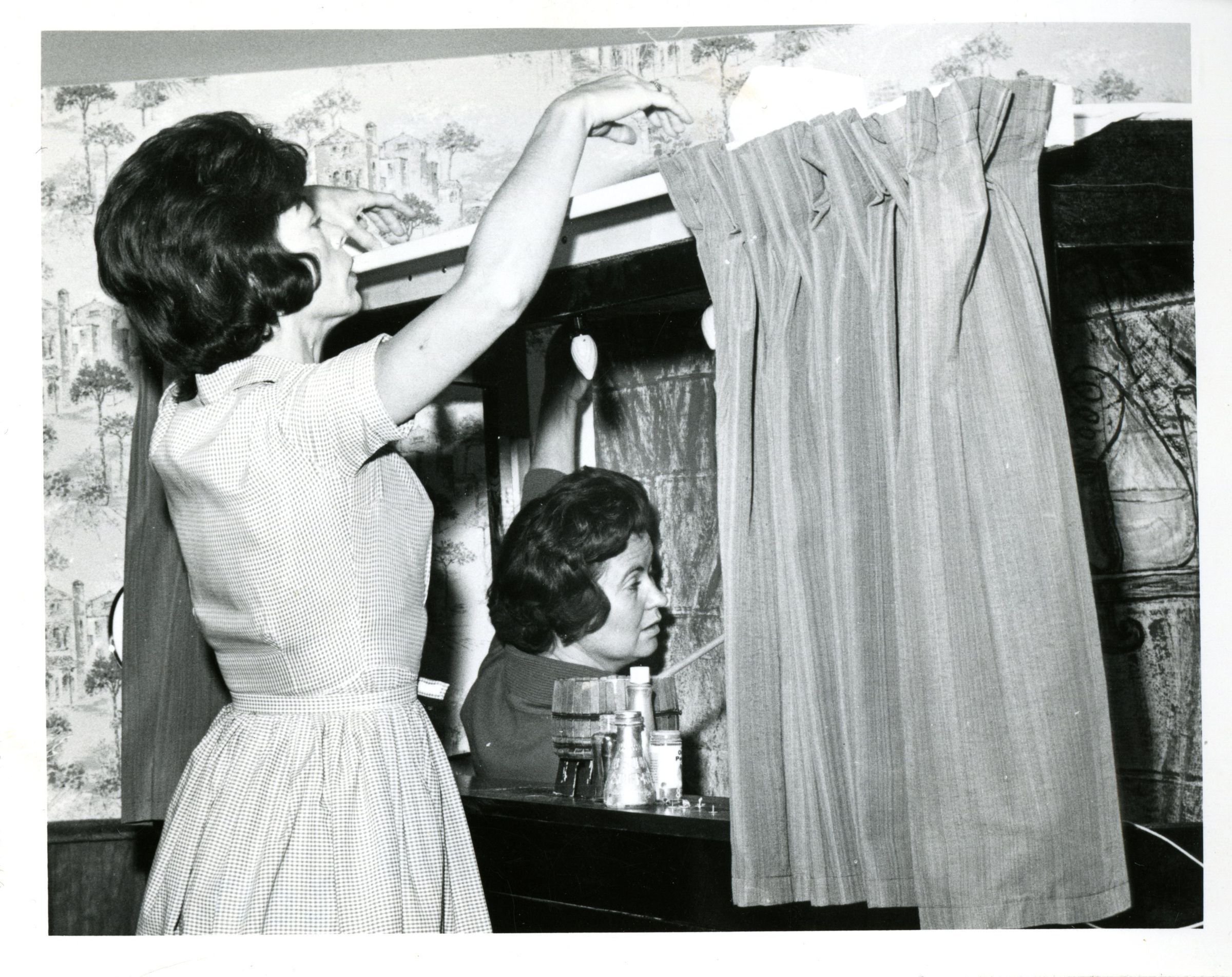 Two women at a puppet show at the Episcopal Church on December 2, 1964. Two women are most likely Mrs. Jay M. Argyle and Mrs. Charles Devore.
