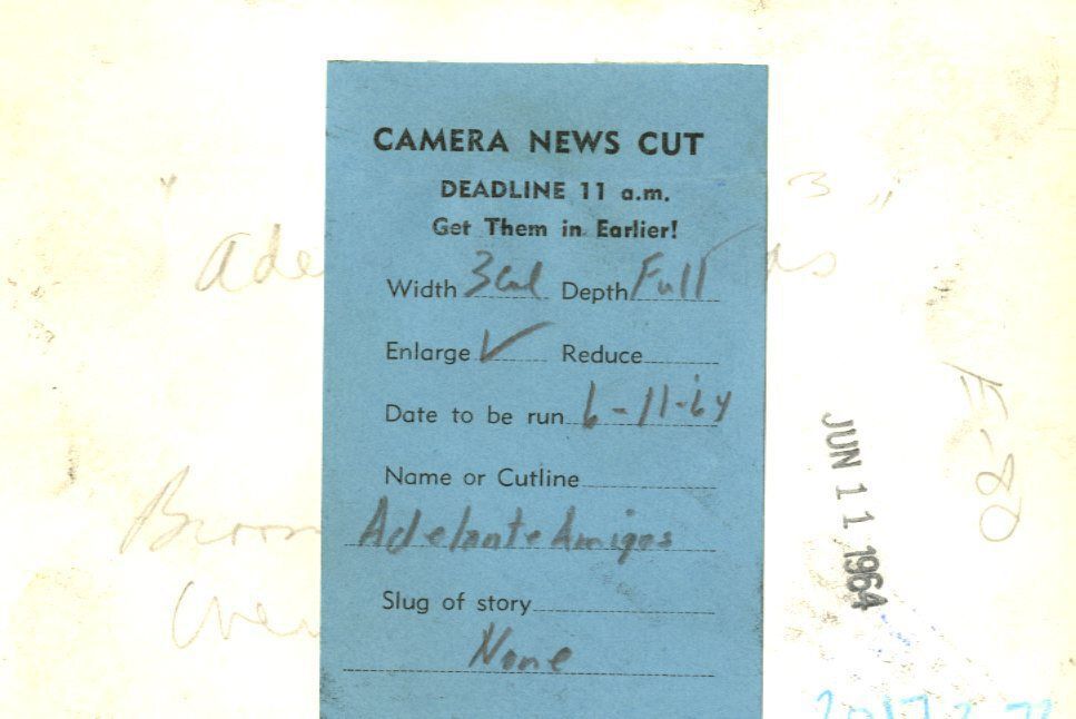 A photo of a large group of people called the "Adelante Amigos" on June 11, 1964. Possibly the Spanish Club.