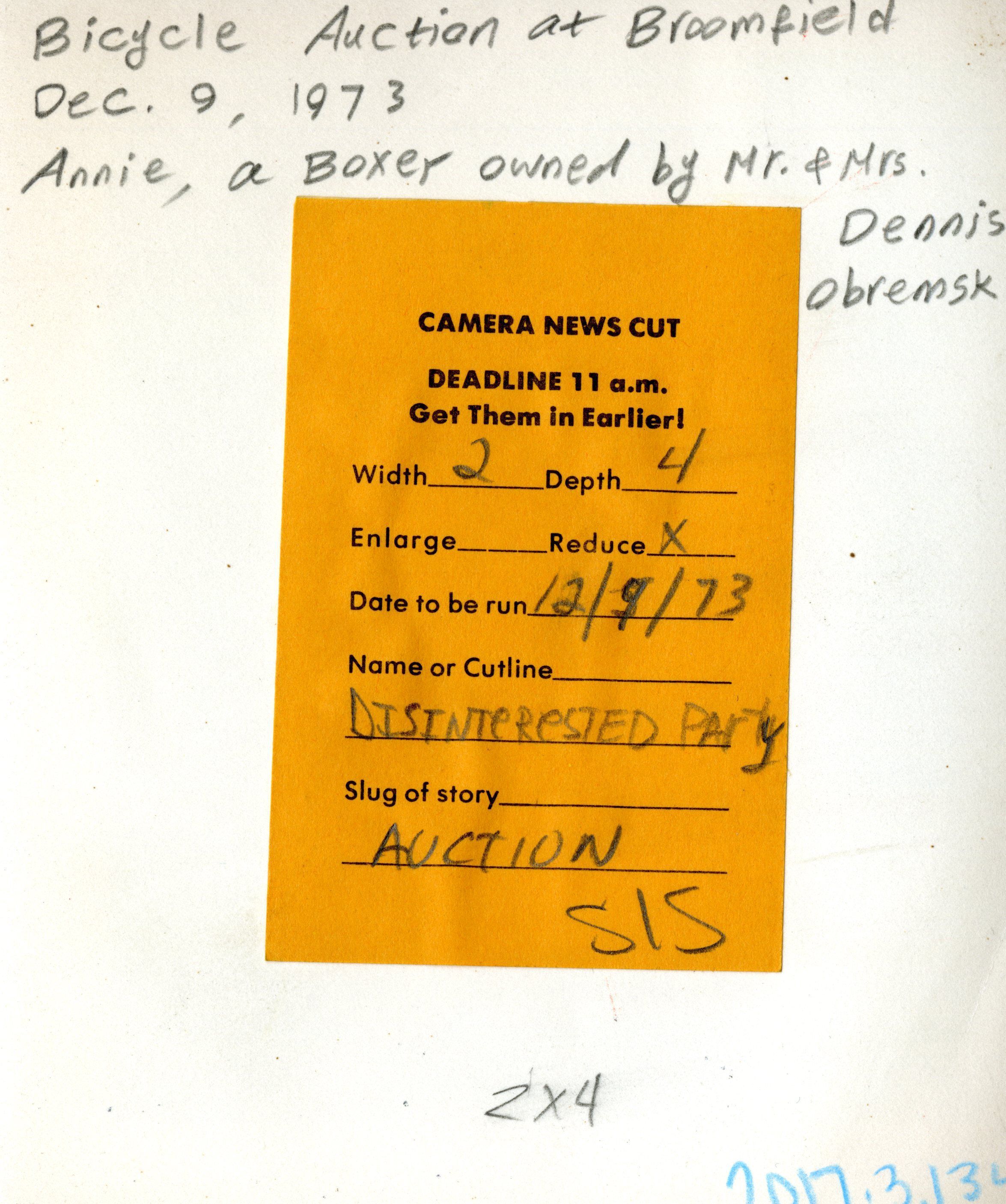 Boxer (dog) - Bicycle Auction at Broomfield - 1973