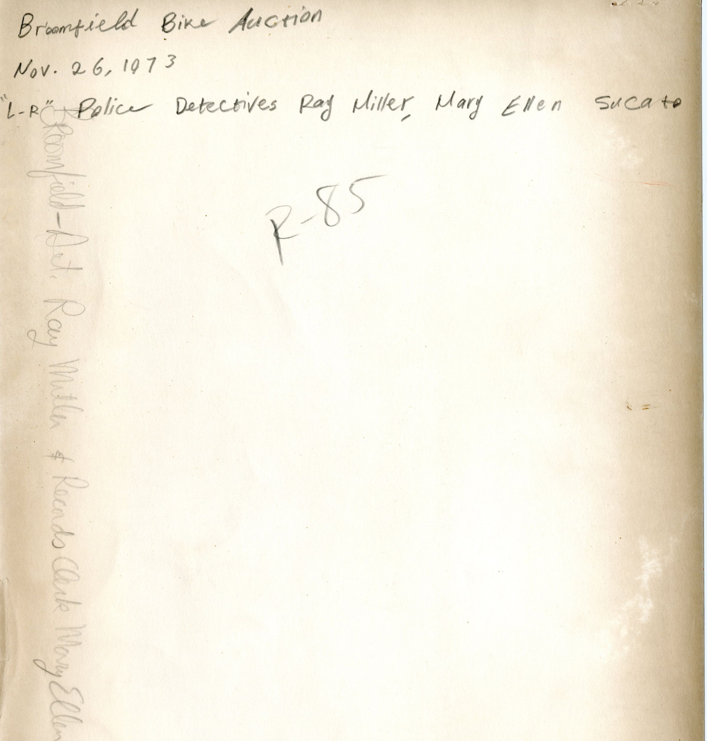 Broomfield Bike Auction - L-R Police Detectives Ray Miller, Mary Ellen Sucato - 1973Entry/Object ID