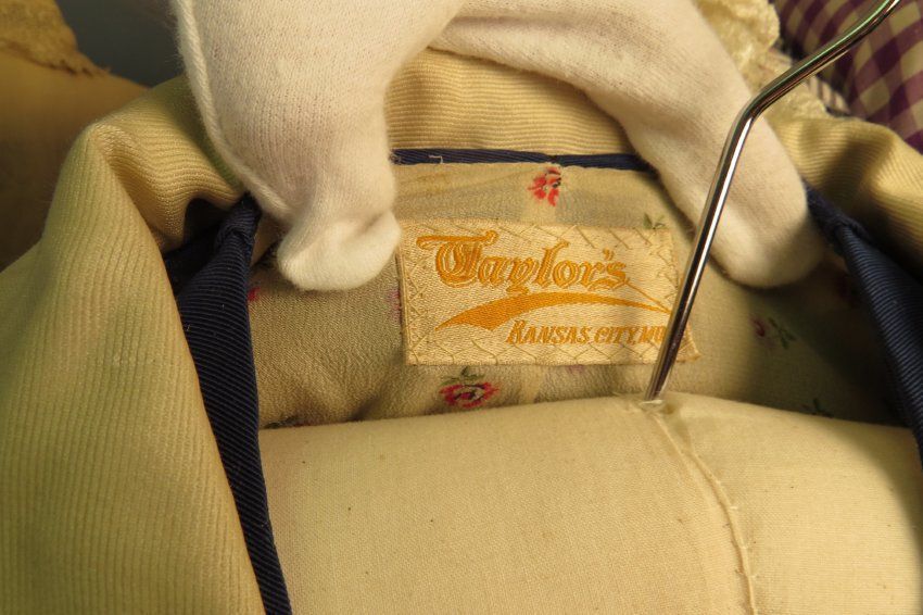 Maker's Mark: The words are embroidered onto a fabric tag which is tacked to the dress.Lexicon