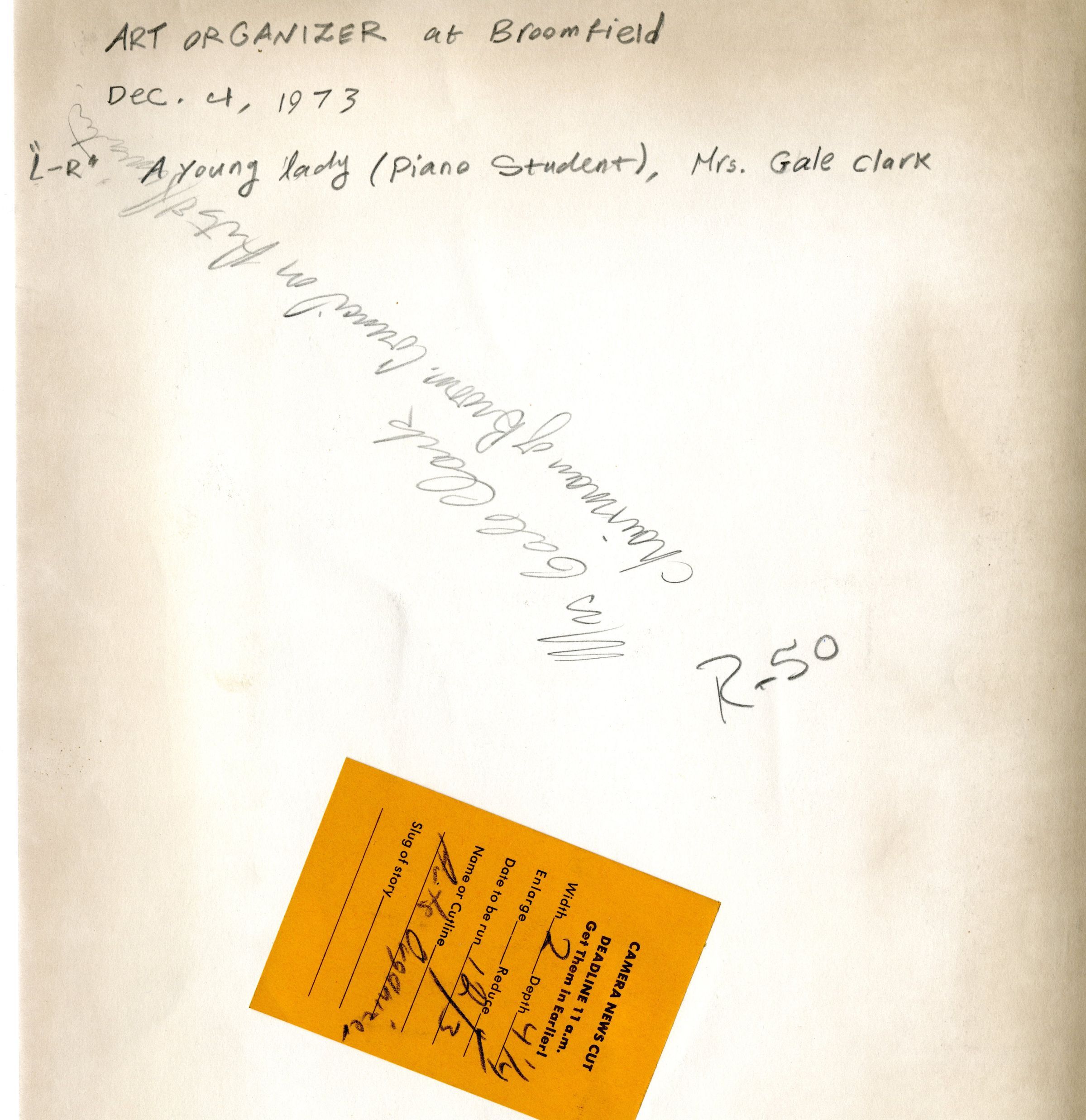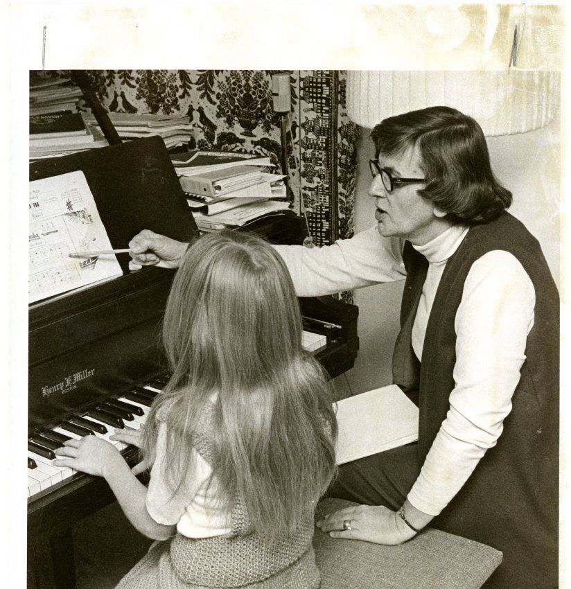 Art Organizer at Broomfield L-R A young lady (piano student), piano teacher Mrs. Gale Clark, Chairman of Brown Council on Arts and Humanities