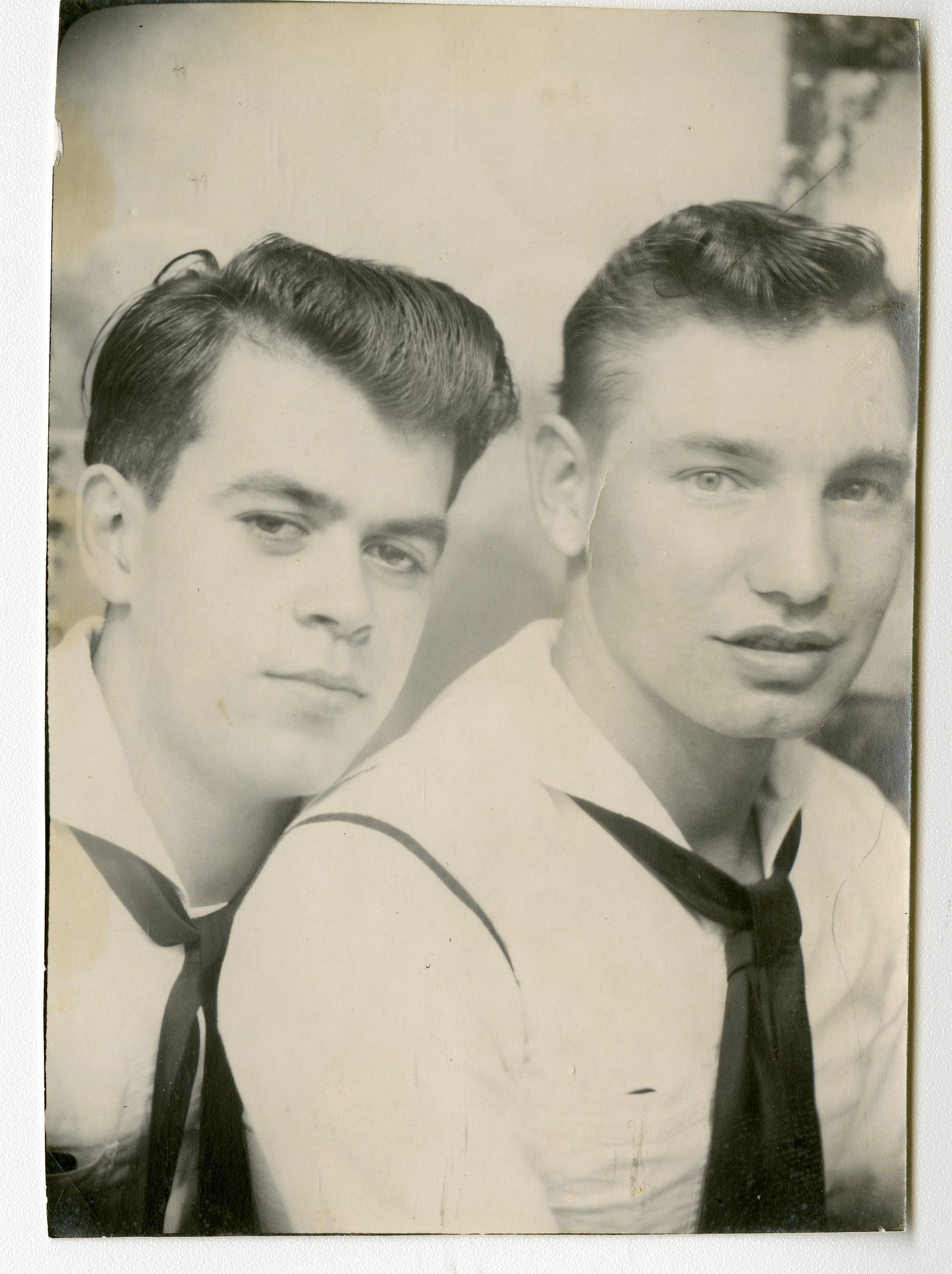 Black and white photograph of two men. The man on the right is Gilbert Brunner.