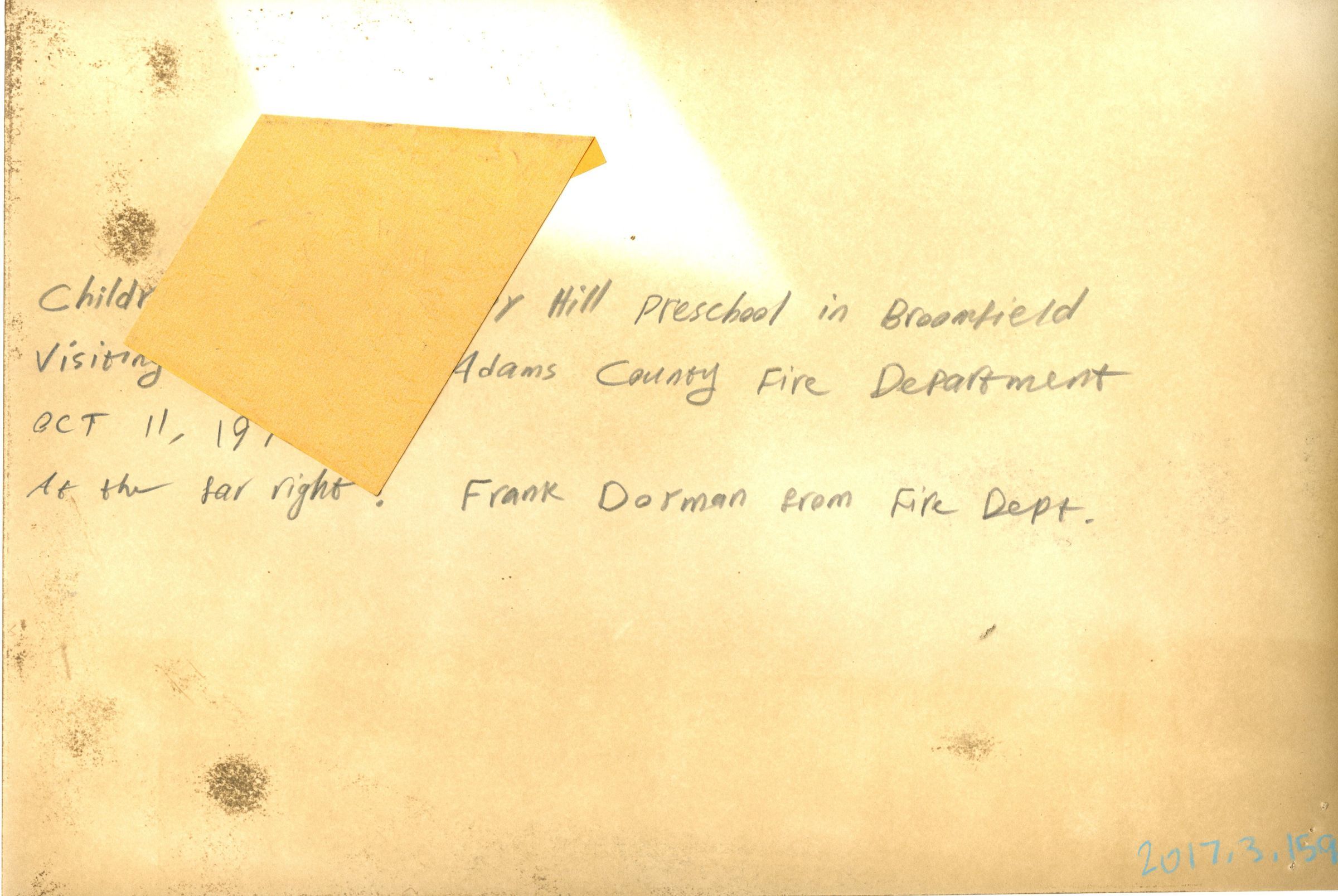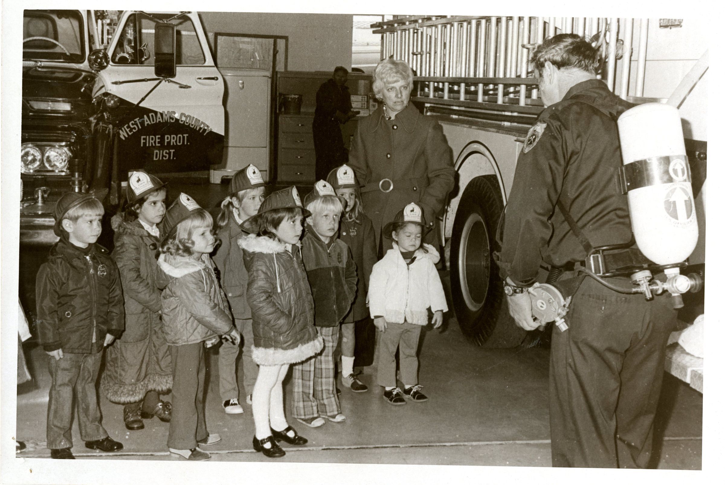 Children from the Happy Hill Preschool in Broomfield Visiting the West Adams County Fire Department At the far right: Frank Dorman from Fire Department