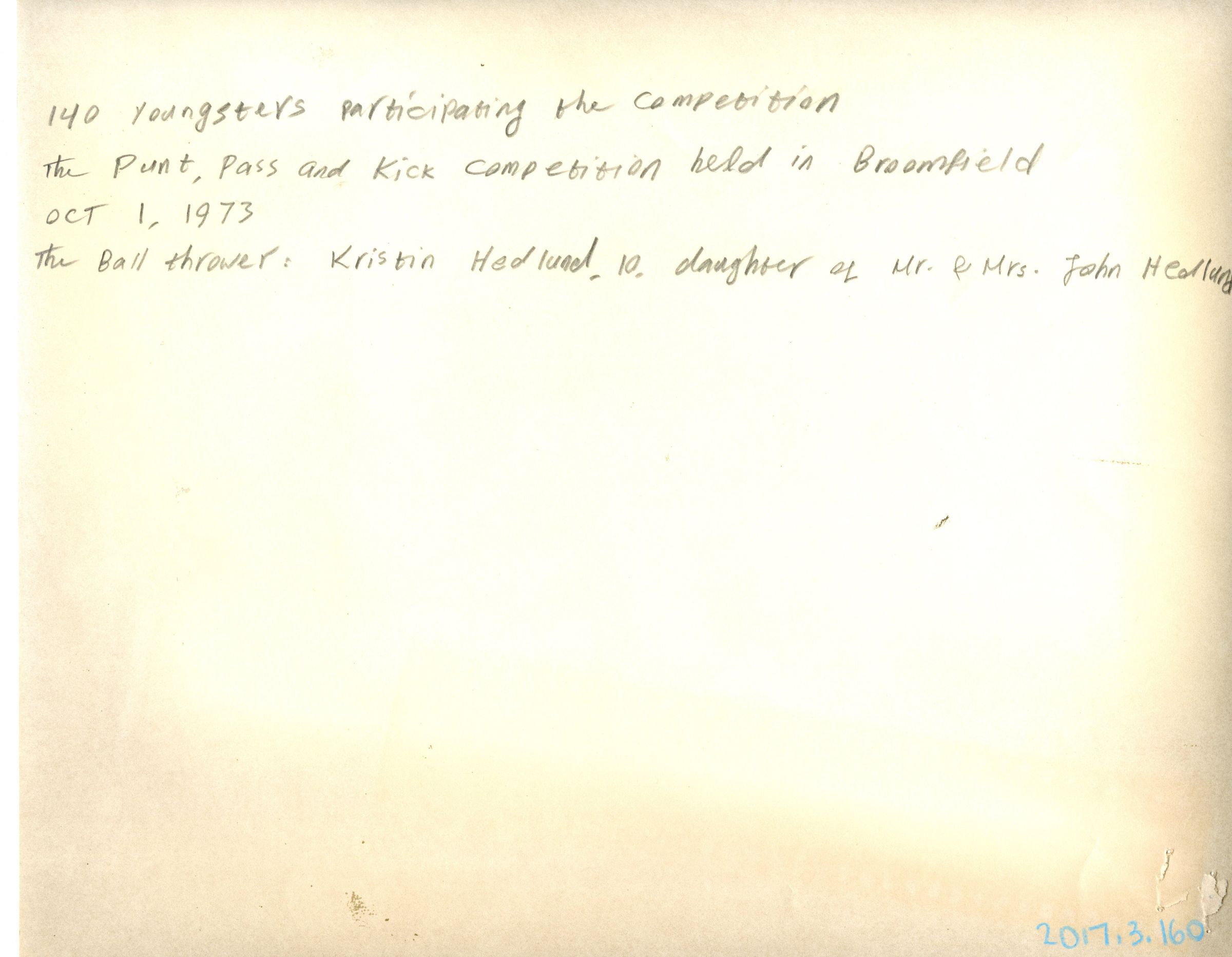 The ball thrower, Kristin Hedlund, 10, daughter of Mr. and Mrs. John HedlundCollection