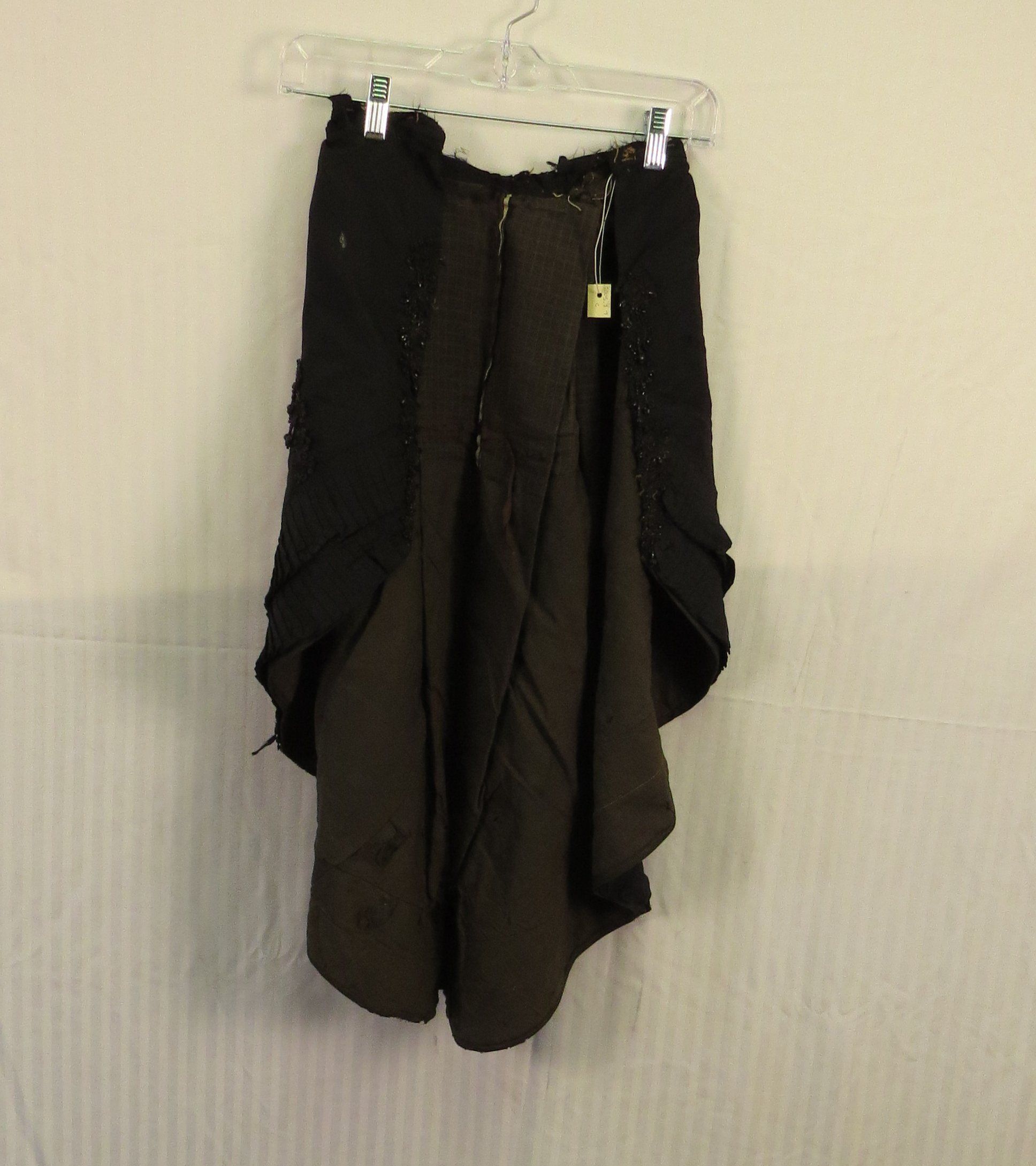 The overskirt (c) is worn around the middle over the skirt and just under the bodice. It is mostly a large drape in the back with additional beading and beaded tassles.Collection