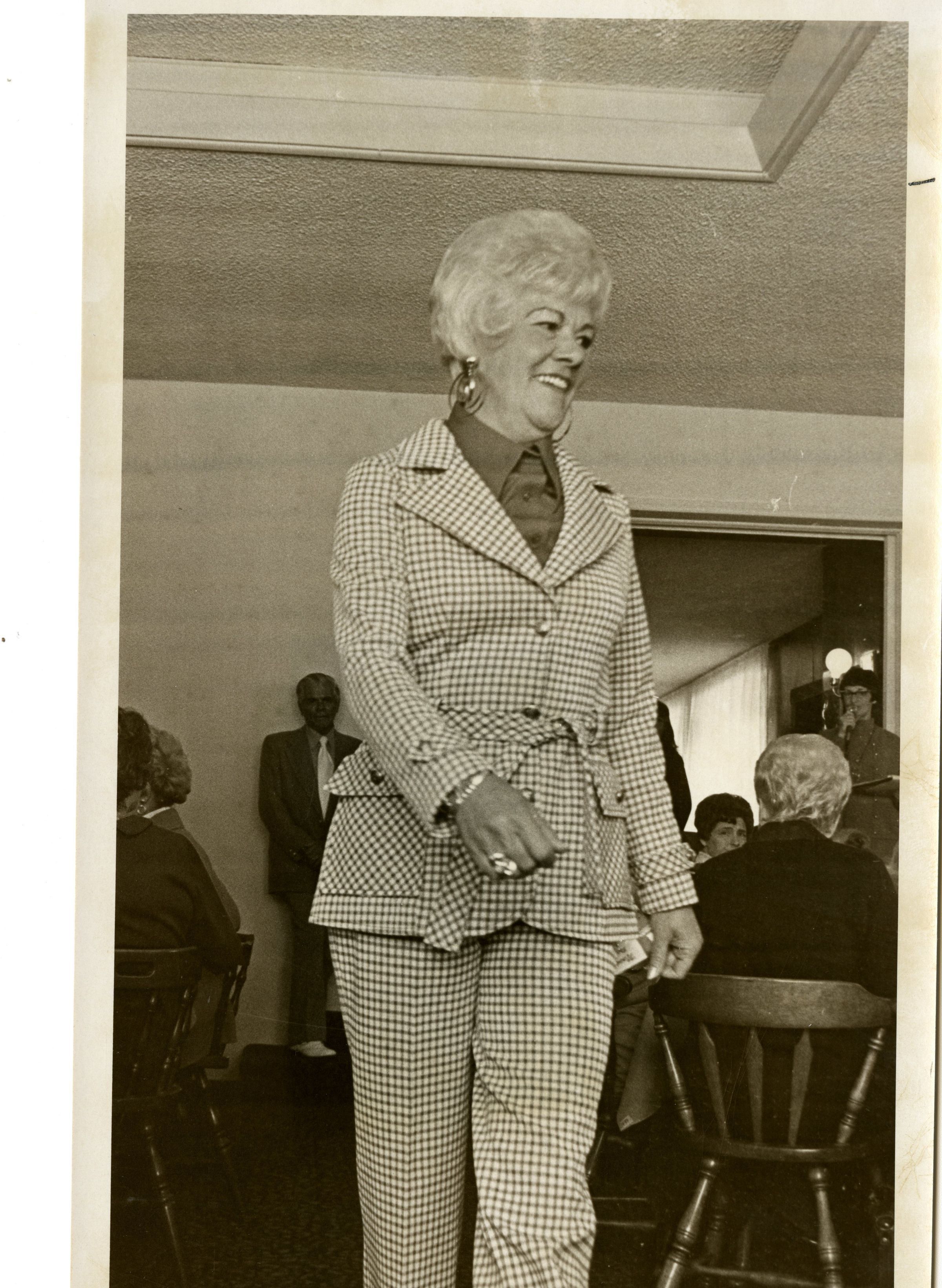 woman at the Broomfield Country Club modeling a two - piece modern outfit, possible fashion show