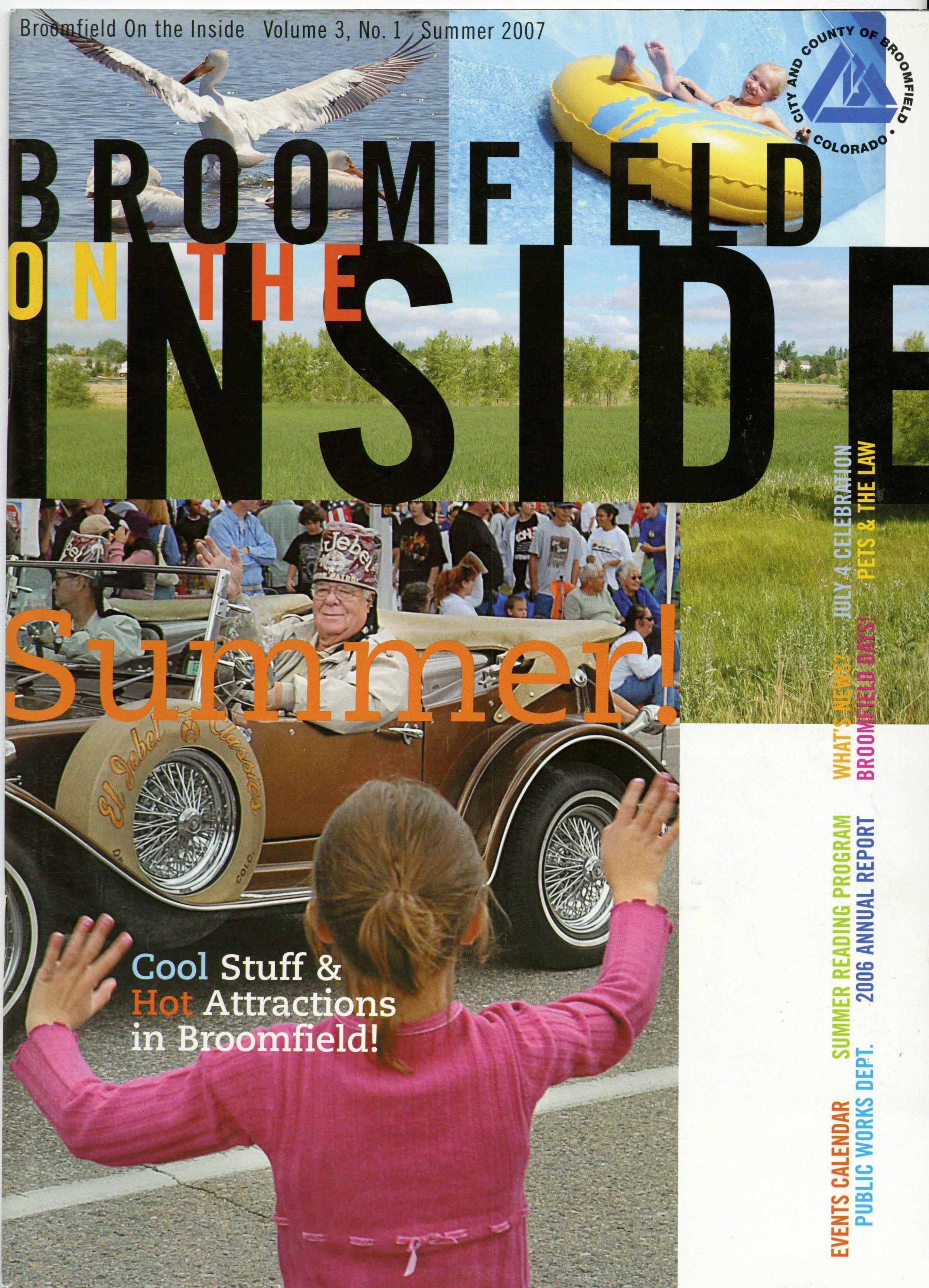 A copy of "Broomfield On the Inside." It is volume 3 number 1 and was for summer 2007. Articles include "July 4 & The Great American Picnic," "School shots," "Public Works," "Broomfield Days," and "Calendar."Publication Details