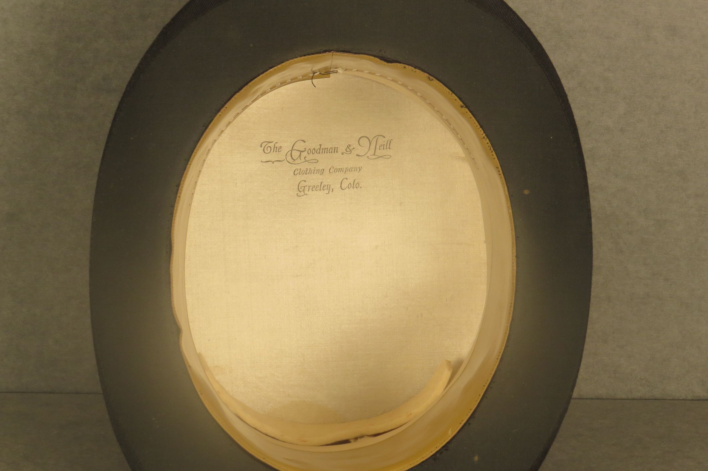 Black beaver top hot "The Goodman & Neill Clothing Company Greeley, Colo."