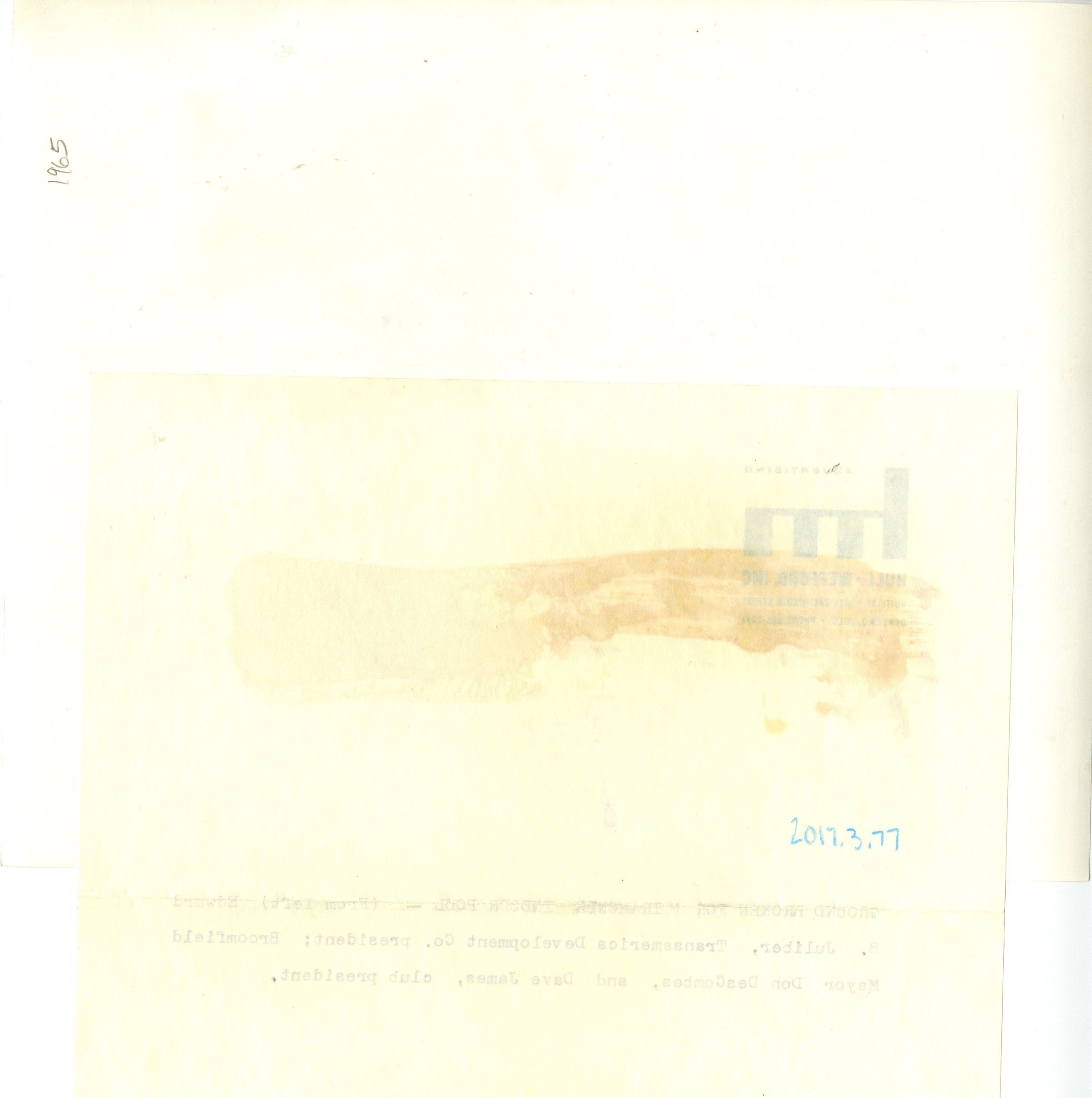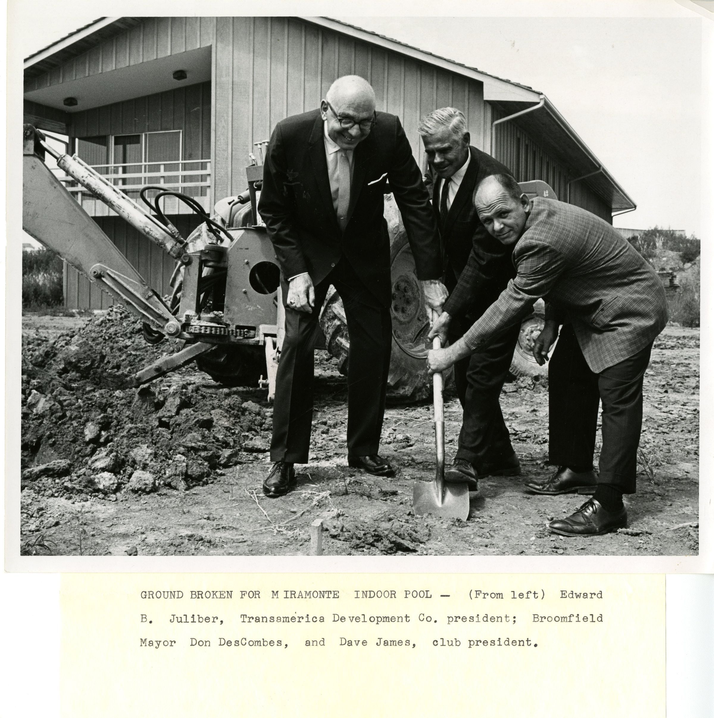 Ground Broken for Miramonte Indoor Pool From left- Edward B. Juliber, Transamerica Development Co. president; Broomfield Mayor DesCombes, and Dave James, club president.