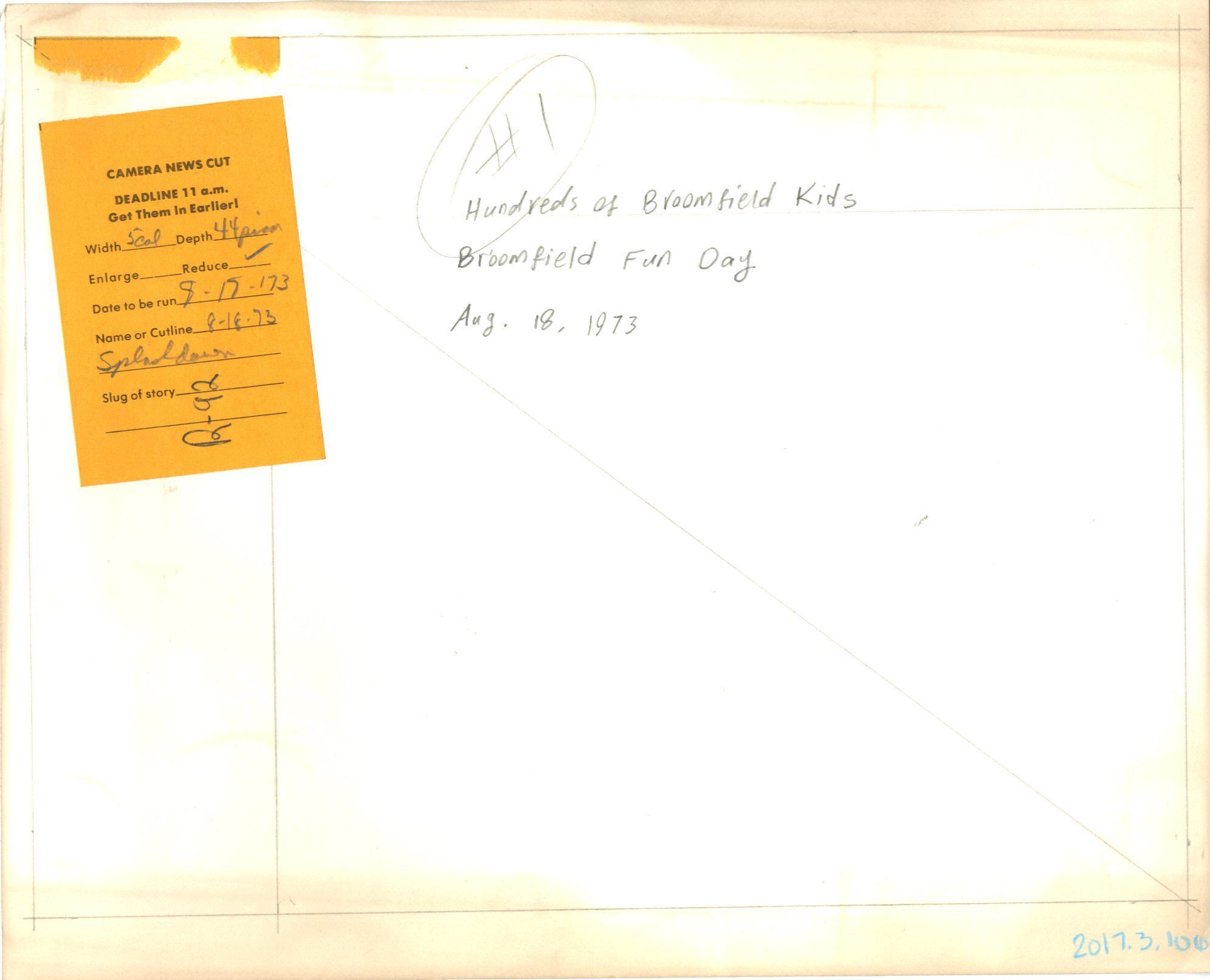 Hundreds of Broomfield Kids - in sprinklers? - Broomfield Fun Day - 1973
