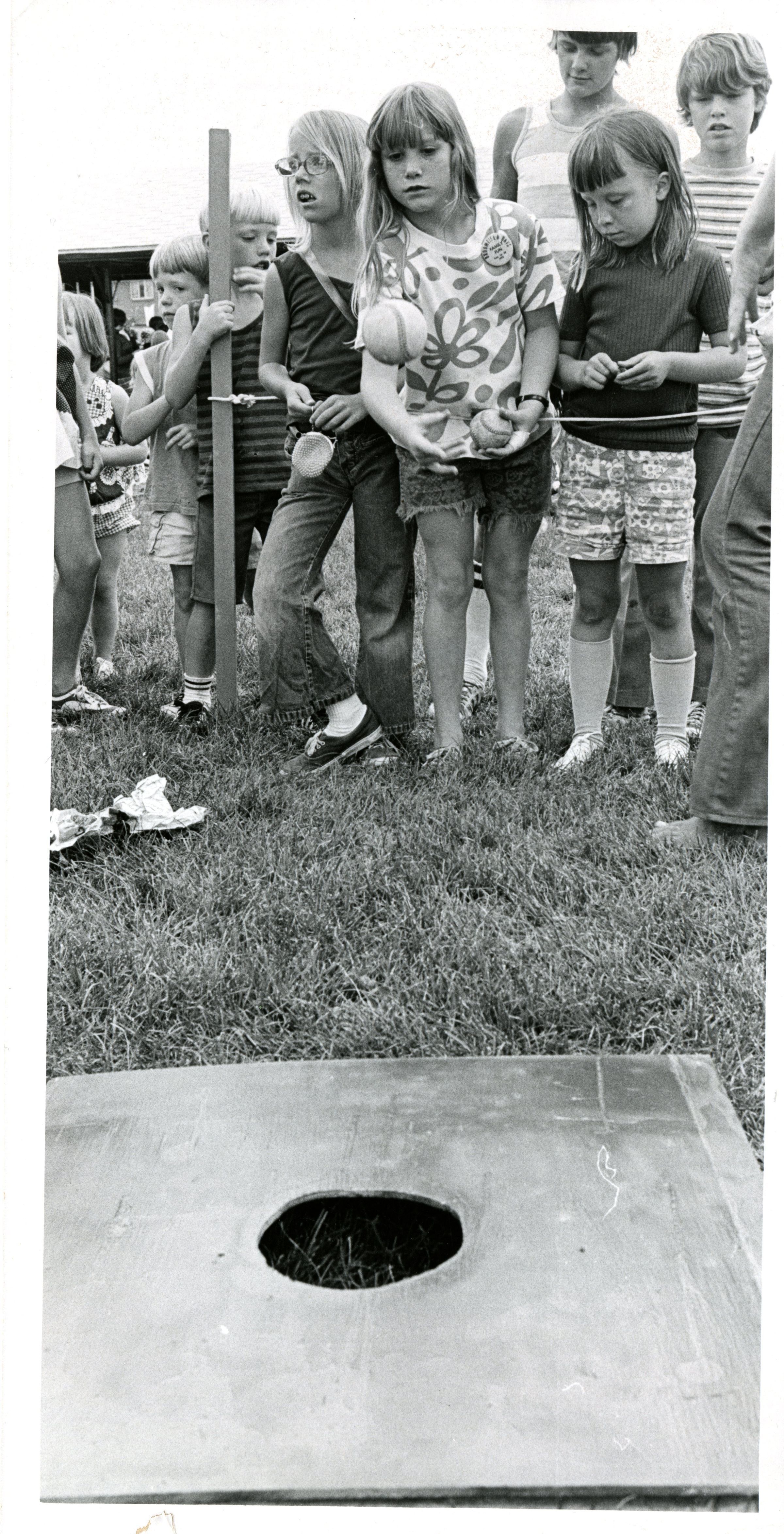Broomfield Fun Day - Kids throwing baseballs into hole August 18, 1973