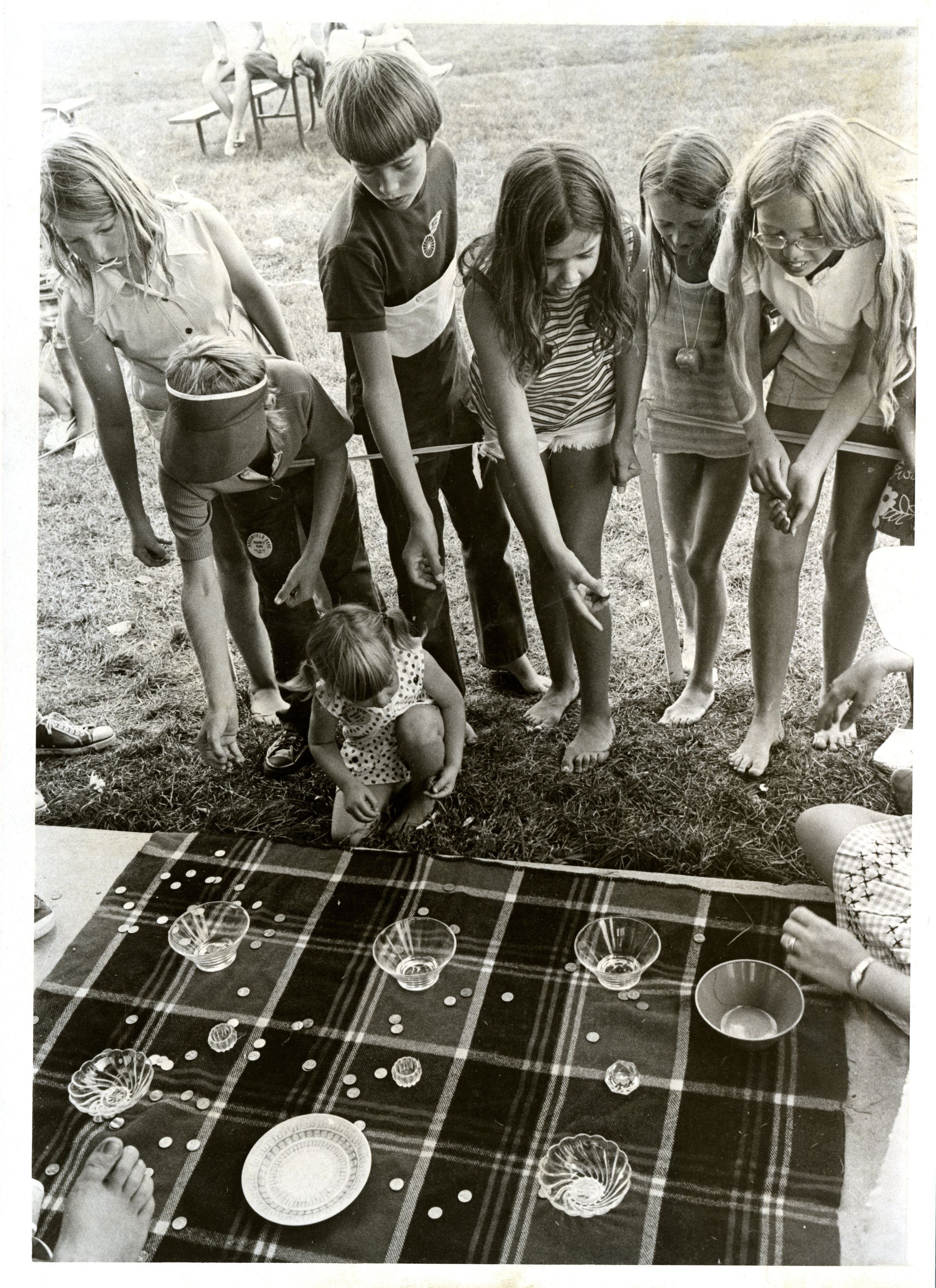 Broomfield Kids throwing coins into glasses - Broomfield Fun Day 1973