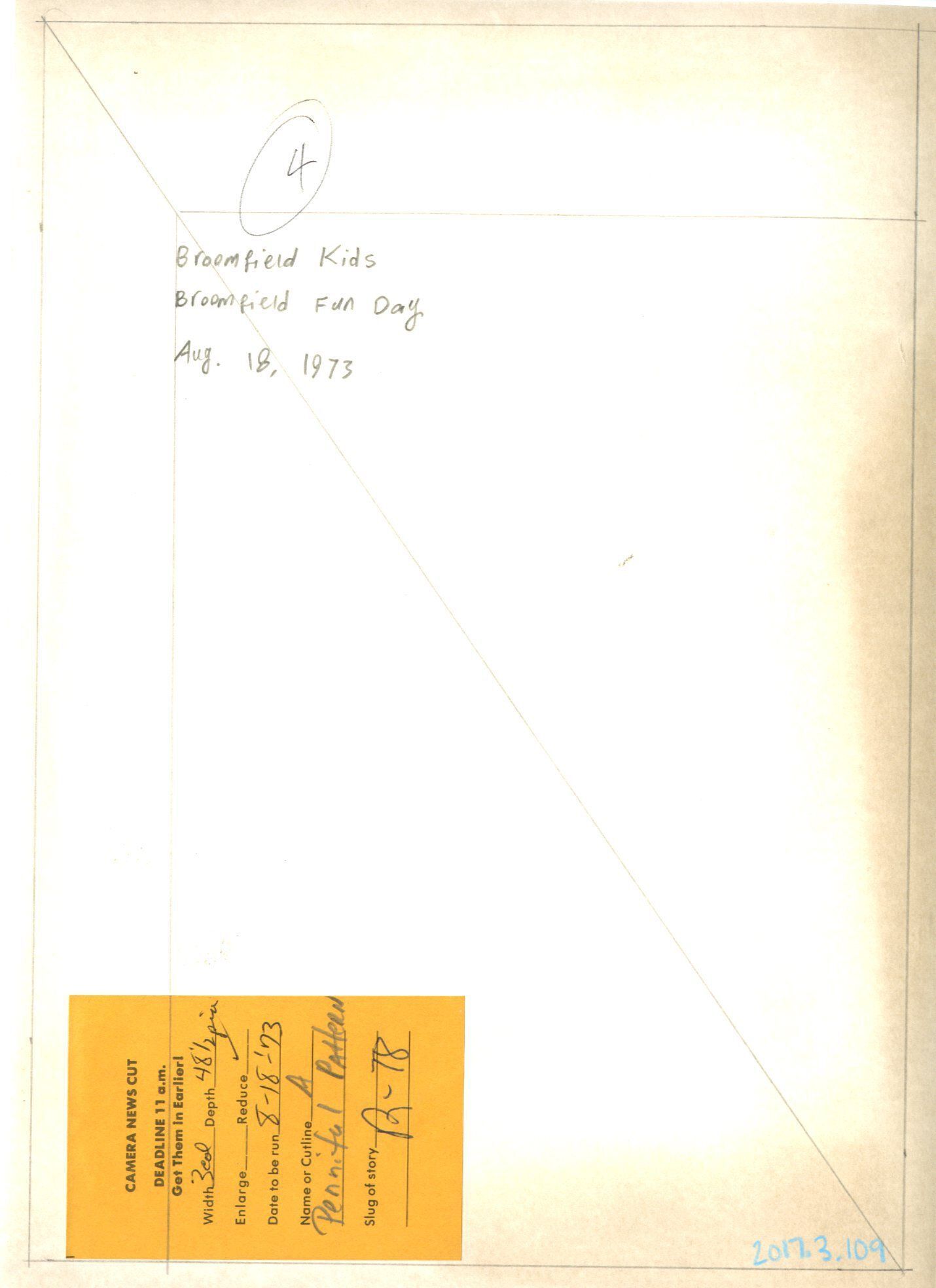 Broomfield Kids throwing coins into glasses - Broomfield Fun Day 1973 Caption: Plentiful Pattern August 18, 1973