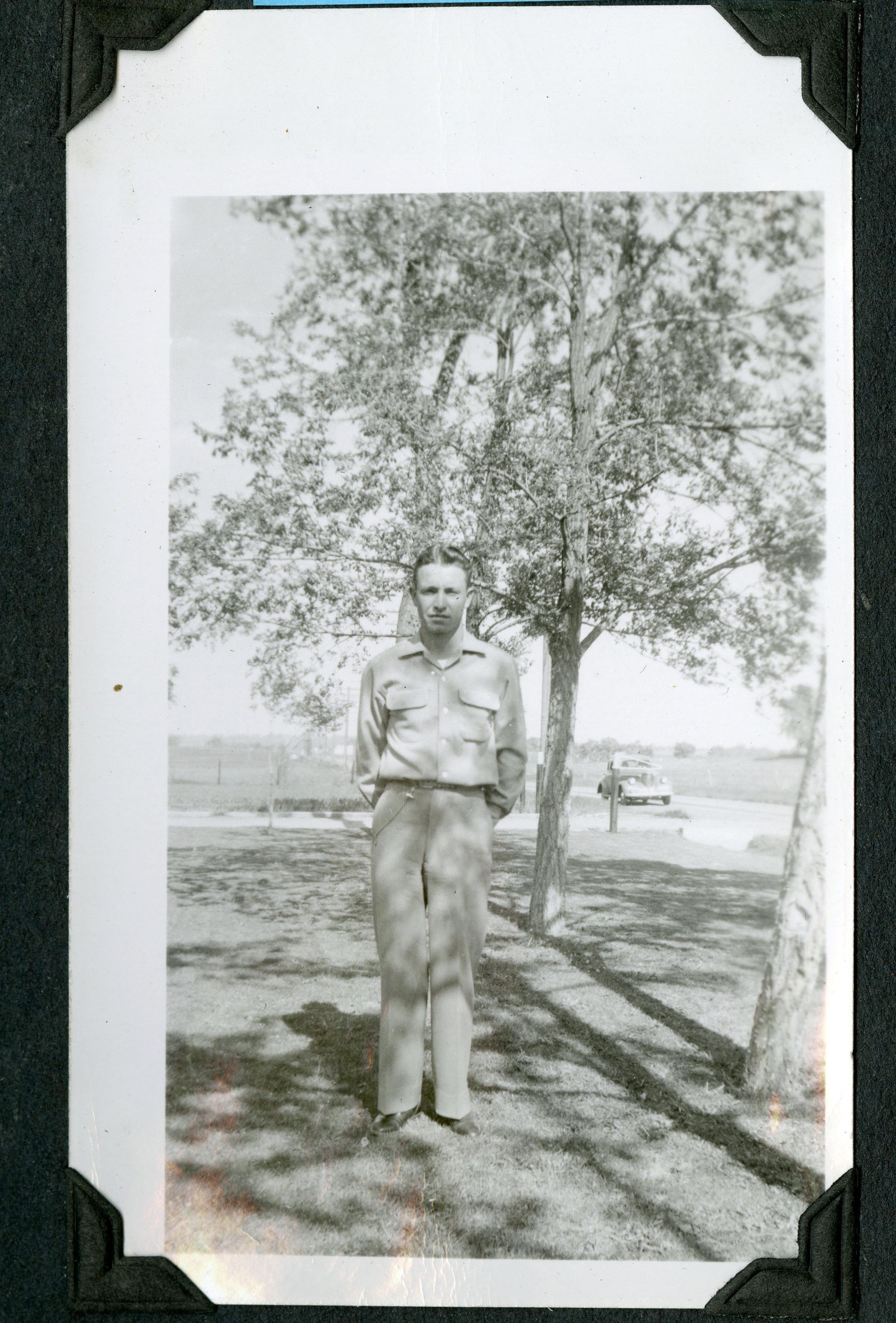 Black and white photograph of a young man identified as Clyde Brunner. The photograph was taken at the Old Wadsworth farm.