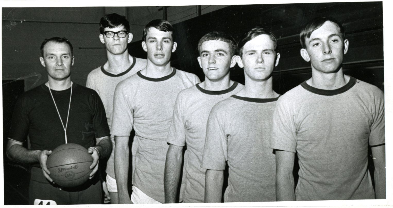 Broomfield Eagles High School Basketball - coach and five players Head Coach Bill Sigley Jerry Fithian to right of coach