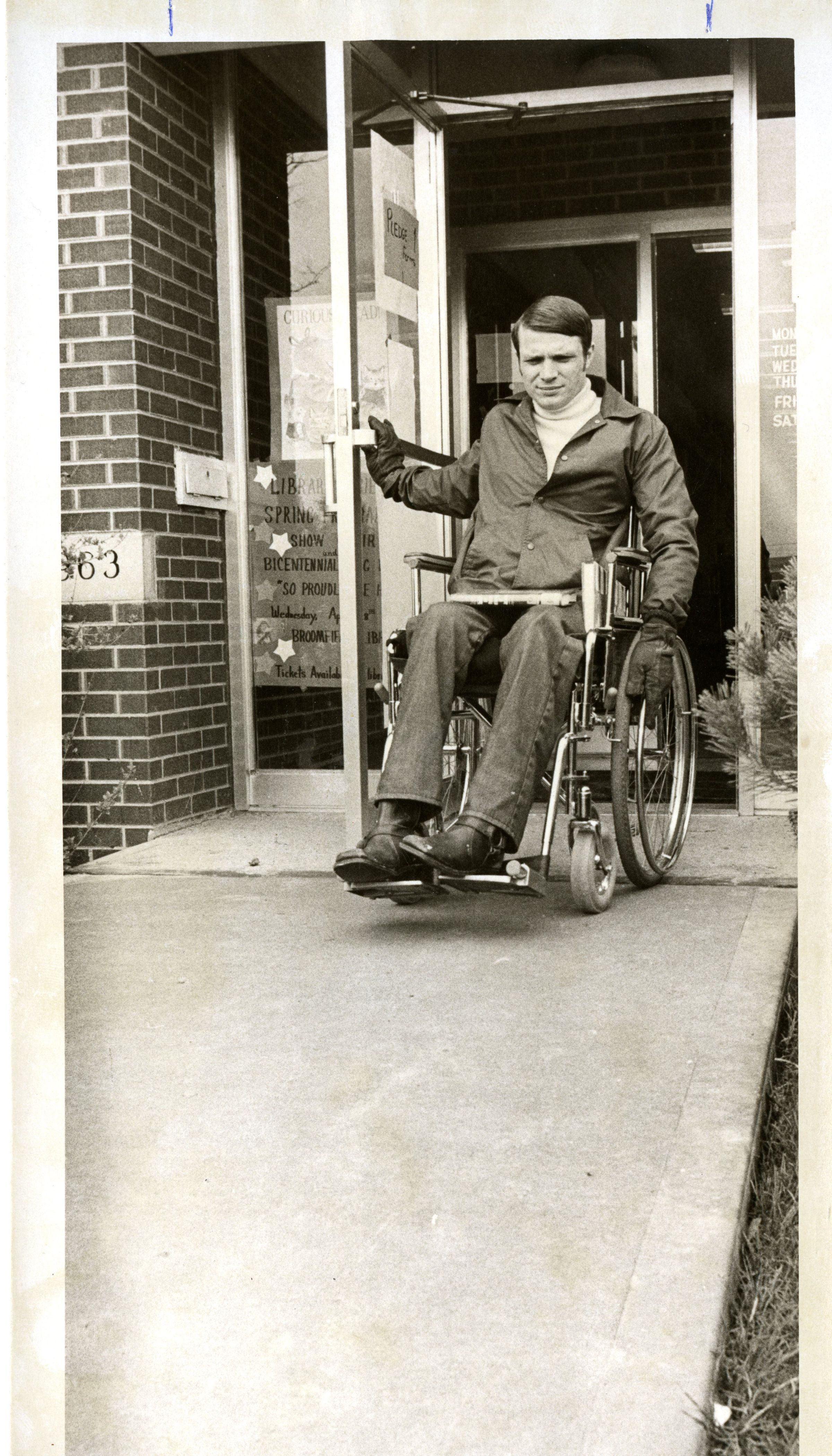 Rob Lewis - Man in wheelchair coming out of Broomfield Library